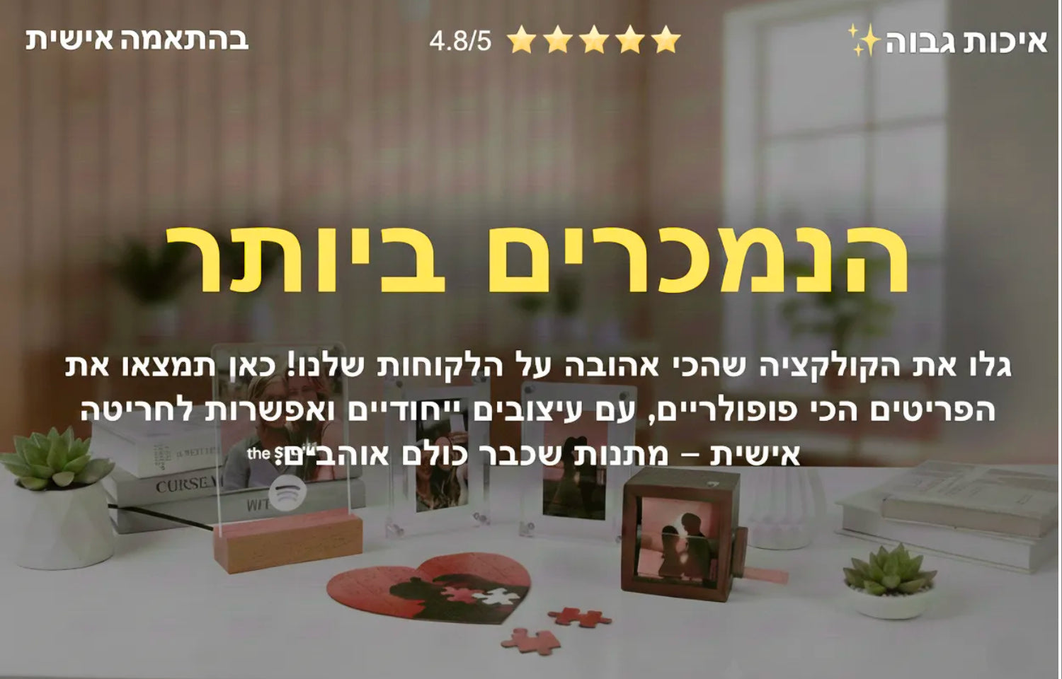 החנות שלנו פתוחה ומקבלת הזמנות 24 שעות ביממה, 7 ימים בשבוע