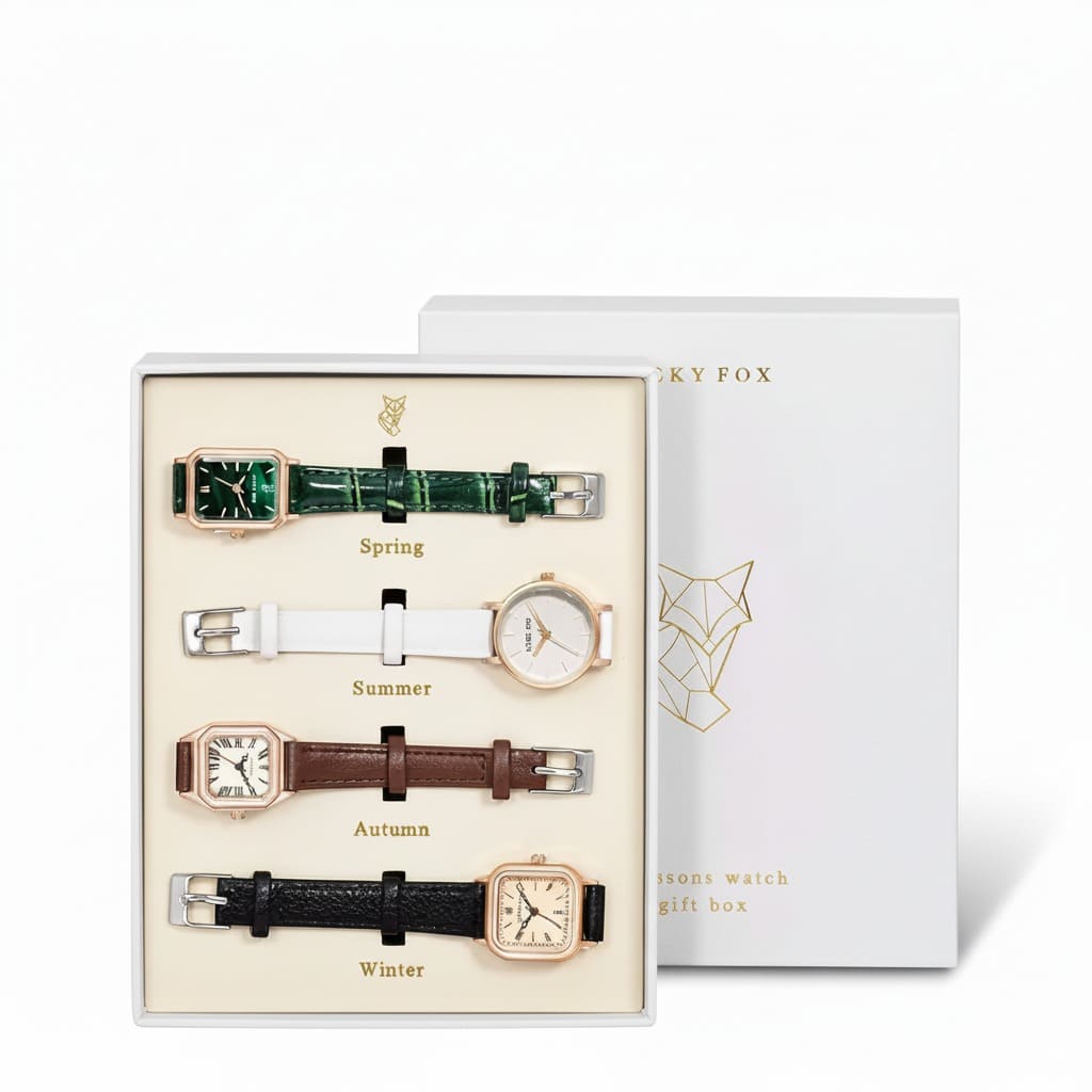 חגגו את עונות השנה המתחלפות עם סט ארבעת השעונים היפהפה והאצור הזה. כל שעון בסט כולל עיצוב ייחודי, רצועה בצבע שונה ולוח שעון מובחן, המייצגים את האלגנטיות של האביב, הקיץ, הסתיו והחורף. הסט מציע מגוון סגנונות, מקלאסי ועד עכשווי, מה שהופך אותו לאביזר המושלם לכל אירוע. הסט מוגש בקופסת מתנה יוקרתית, ומהווה מתנה מתוחכמת ורב-גונית במיוחד.