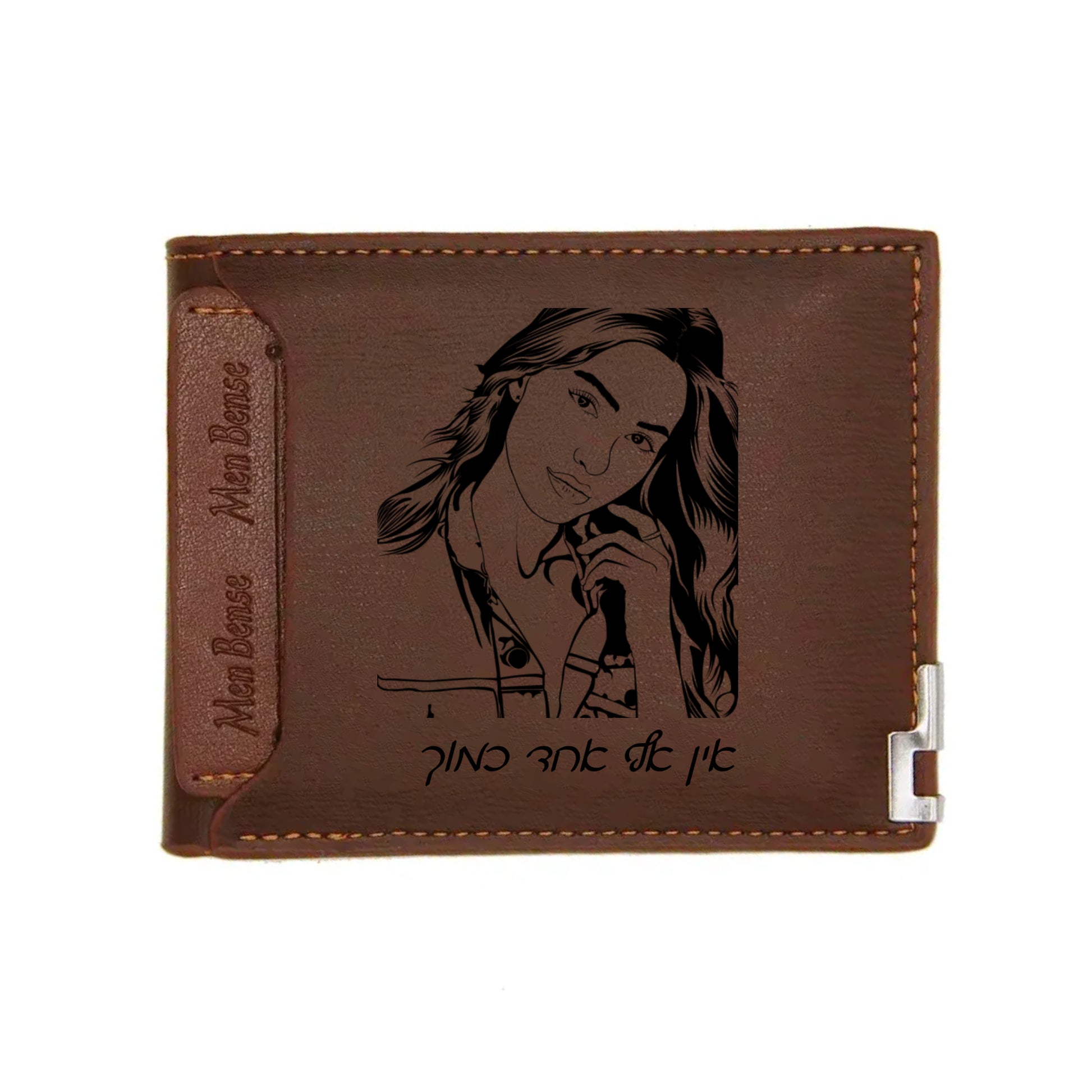 ארנק עור לגברים בהתאמה אישית עם תמונה חרוטה ומשפט