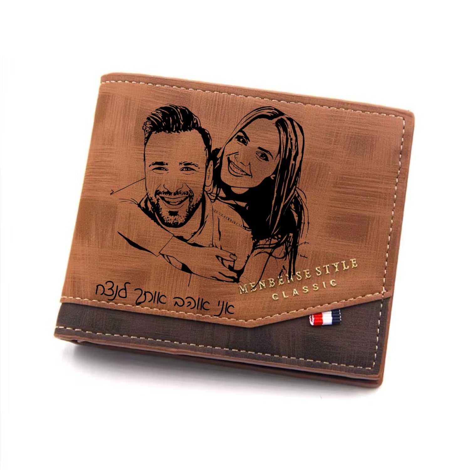 ארנק עור לגברים בהתאמה אישית עם תמונה חרוטה ומשפט