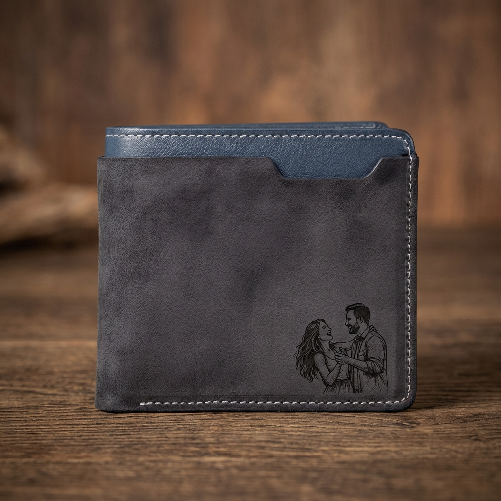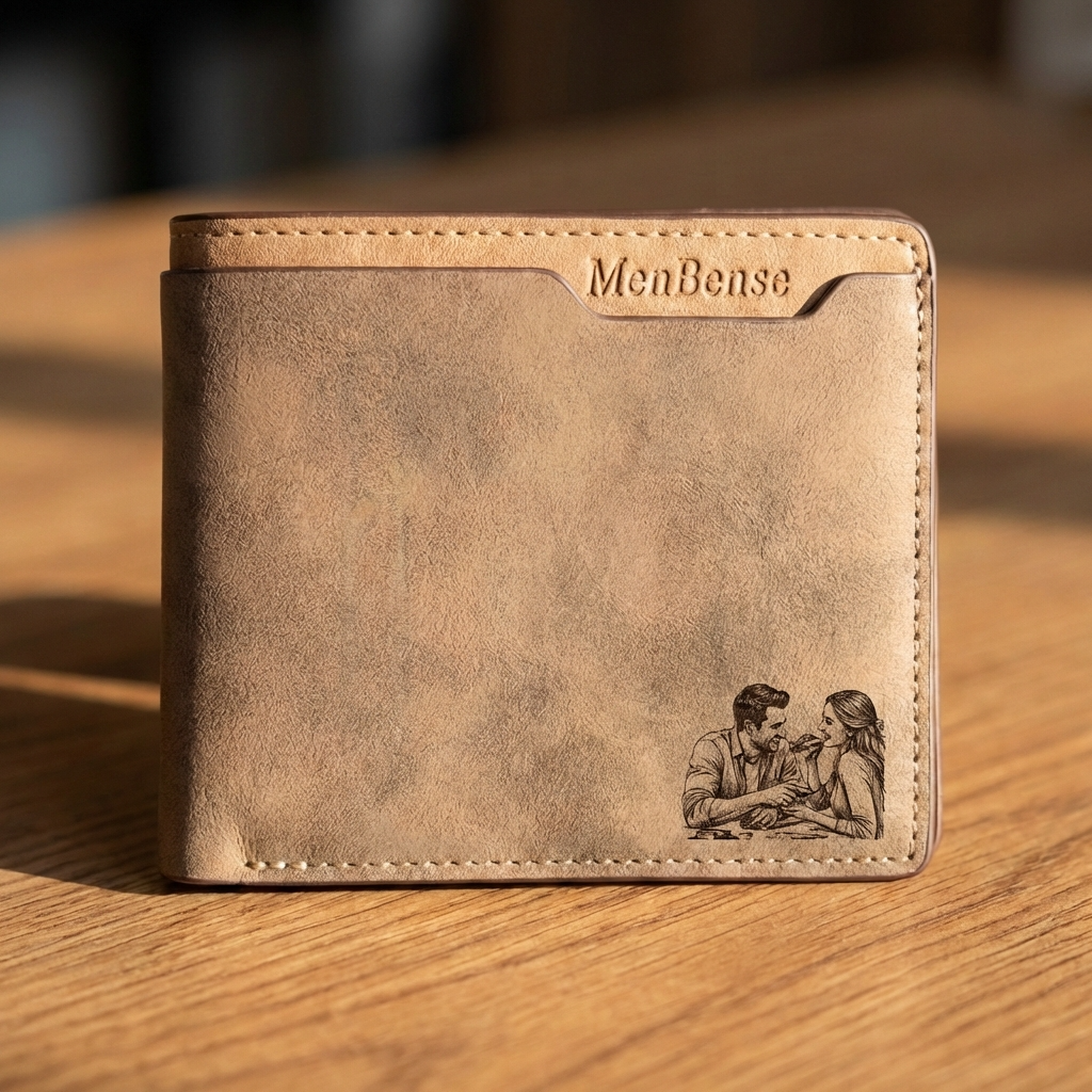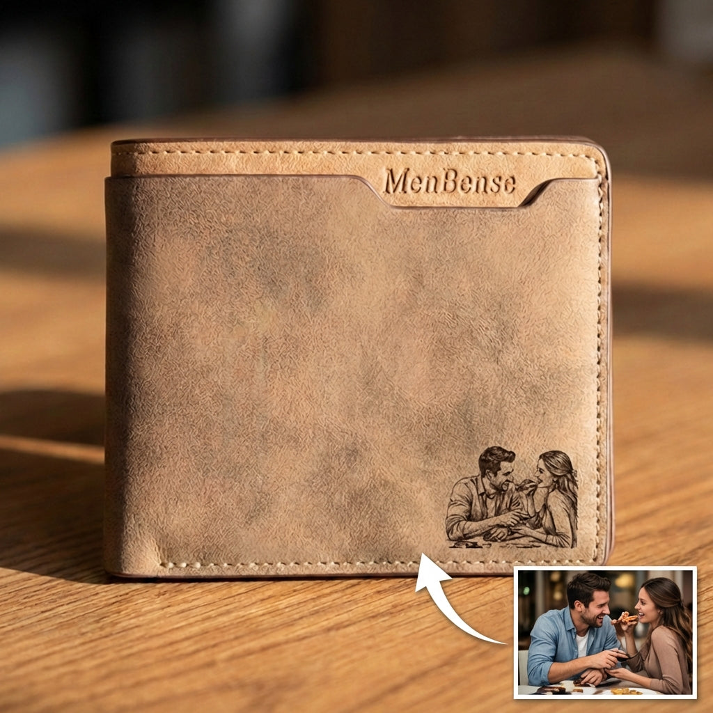ארנק עור לגברים בהתאמה אישית עם תמונה חרוטה ומשפט