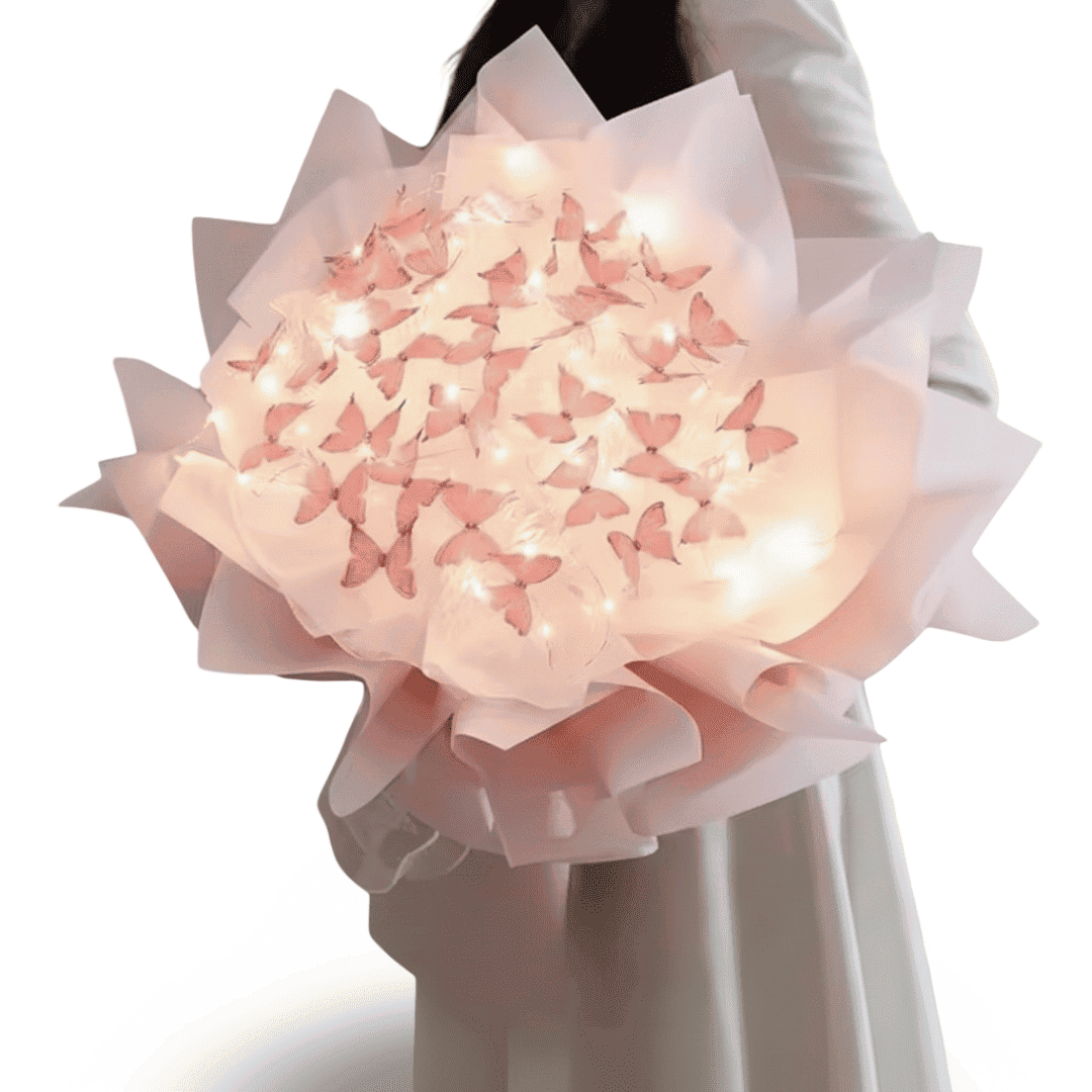 הכניסו מגע של קסם לכל אירוע עם זר הפרפרים הזוהרים. זר מדהים זה כולל עשרות פרפרים עדינים הזוהרים באור רך וקסום. מעוצב בקפידה בנייר עטיפה יפהפה, מתנה ייחודית ופנטסטית זו מושלמת לימי הולדת, ימי נישואין, או כפריט מרכזי שיאיר כל חדר. זוהי דרך אלגנטית ובלתי נשכחת לחגוג את הרגעים המיוחדים שלכם.