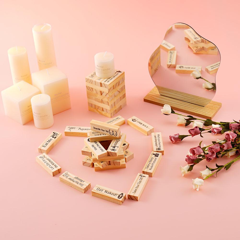 תבלו את לילות הדייטים שלכם עם משחק ג'נגה מרתק ואינטימי לזוגות. כל קוביה חרוטה בפקודה או שאלה שובבה ורומנטית, שהופכת משחק קלאסי לחוויה מרגשת של גילוי וחיבור. כשאתם שולפים כל קוביה ומשלימים את האתגר, תגלו דרכים חדשות להתחבר ולהביע את אהבתכם. המשחק הזה מושלם לחגיגת הקשר שלכם וליצירת זיכרונות בלתי נשכחים יחד.
