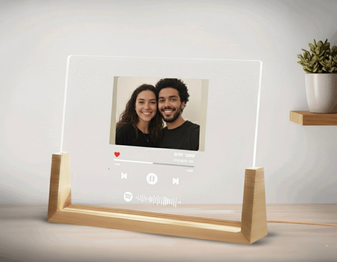 המתנה המיוחדת שלנו עובדת בצורה מאוד פשוטה כל שעליכם לעשות הוא לבחור תמונה ואנחנו נדאג להכין עבורכם את המתנה המושלמת בעיקרון בוחרים שיר + תמונה אנחנו נדאג לייצר עבורכם ולשלוח את זה מנורת לילה עם קוד סריקה לספוטייפי, כל מה שצריך לעשות זה לסרוק את הקוד וזה מנגן את השיר/פלייליסט בטלפון, מתנה ממש מקסימה 🙂 ניתן גם לבקש בוואטסאפ שבמקום שיר בספוטיפיי זה יפתח ביוטיוב, שימו לב שהמנורה עצמה לא מנגנת אלא מהטלפון!
