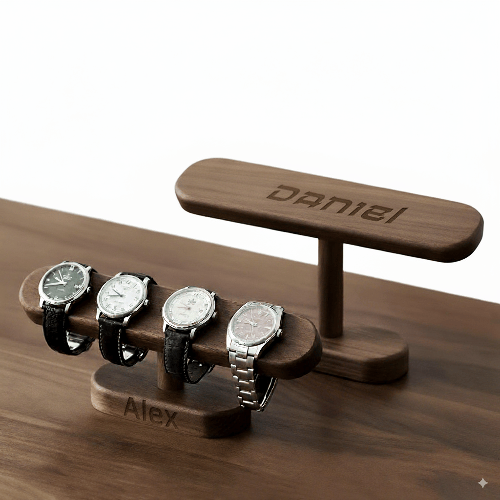 שמרו על השעון שלכם בצורה אלגנטית עם מעמד השעון מעץ שלנו. המעמד המעוצב הזה מספק מקום ייעודי לשעון שלכם. בסיס העץ החלק יכול לקבל חריטת לייזר של שם או ראשי תיבות, מה שהופך אותו למתנה מושלמת לכל חובב שעונים. זהו שילוב של פונקציונליות, אומנות וסגנון אישי.
