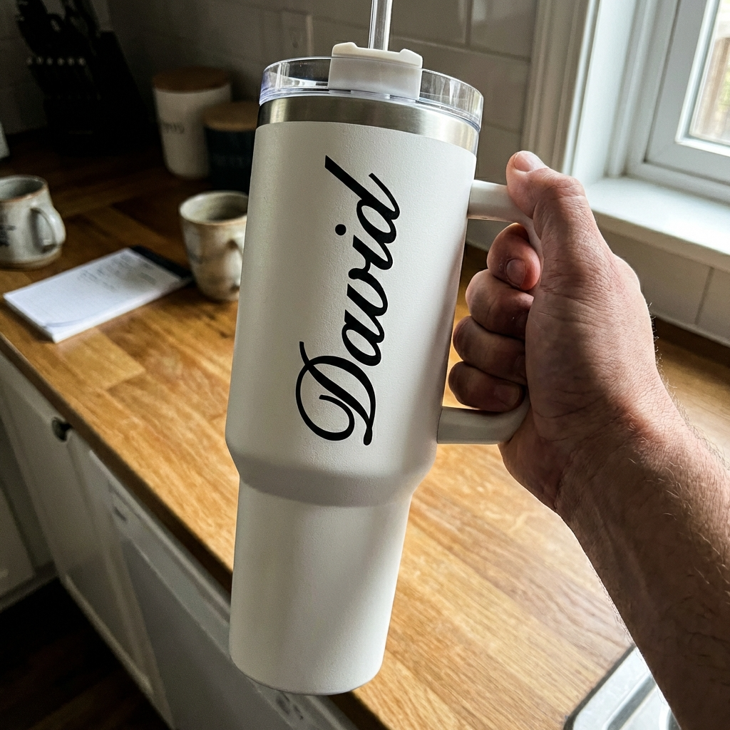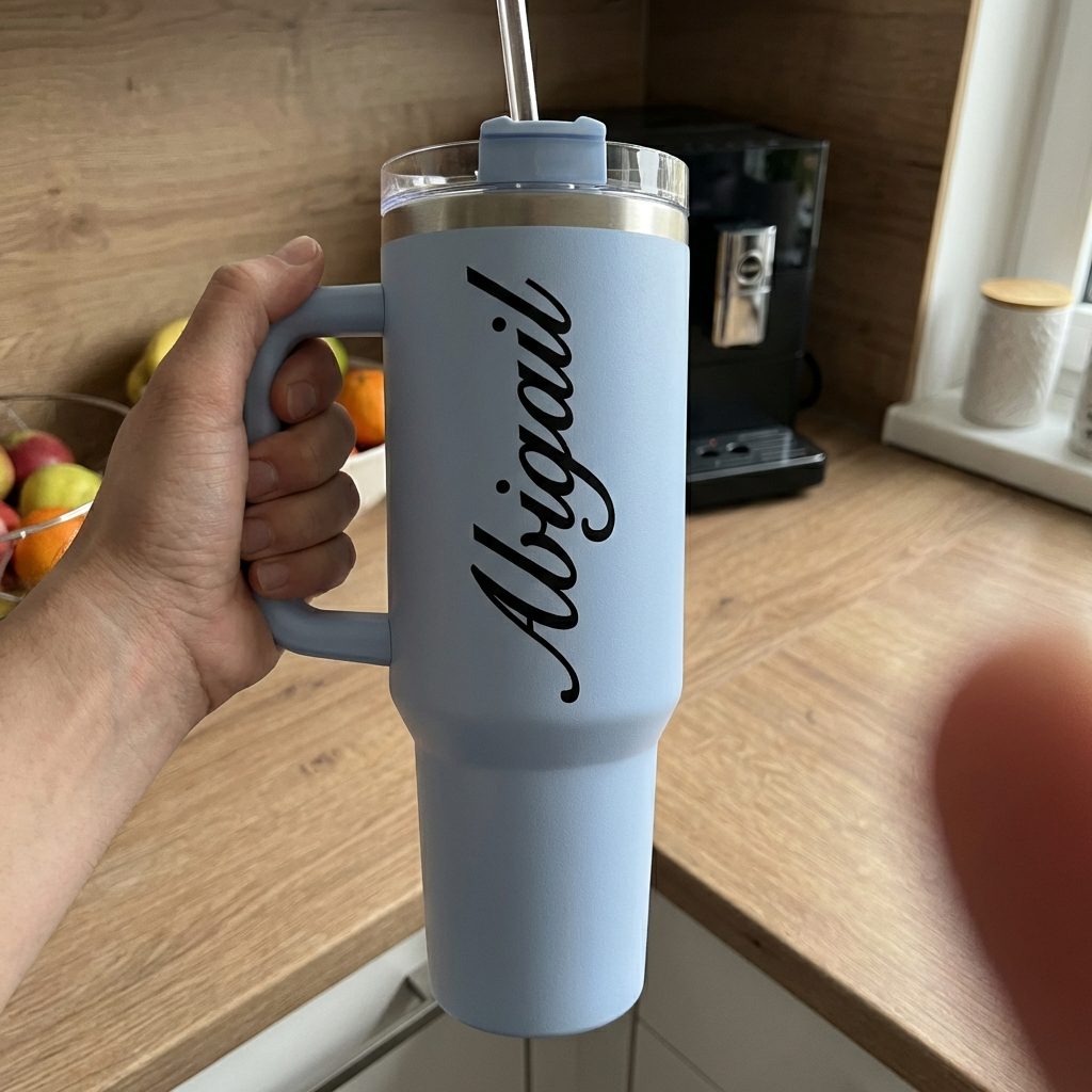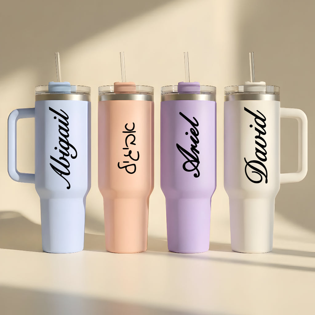 ספל תרמי מותאם אישית, בקבוק, כוס נסיעות, תרמוס עם ידית ומכסה, סטנלי, עם טקסט/שם ותמונה