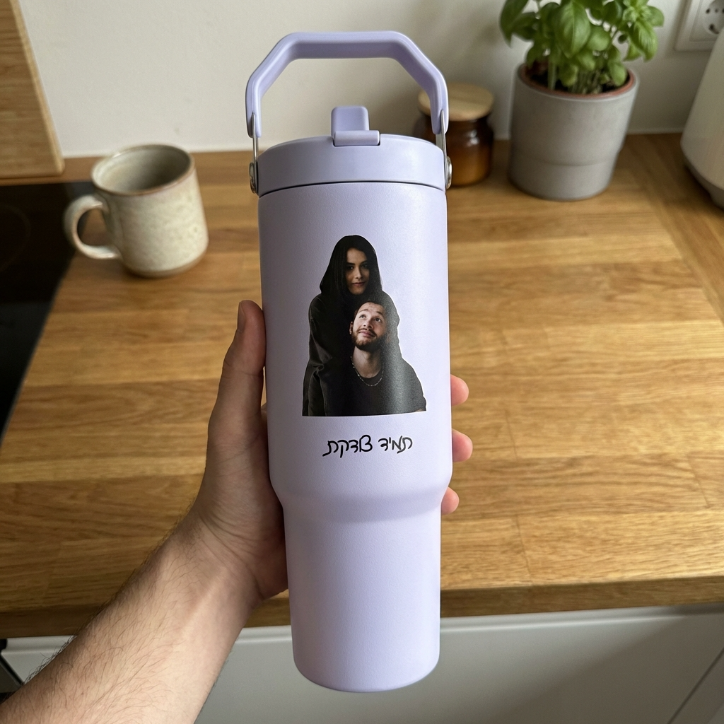 ספל תרמי מותאם אישית, בקבוק, כוס נסיעות, תרמוס עם ידית ומכסה, סטנלי, עם טקסט/שם ותמונה