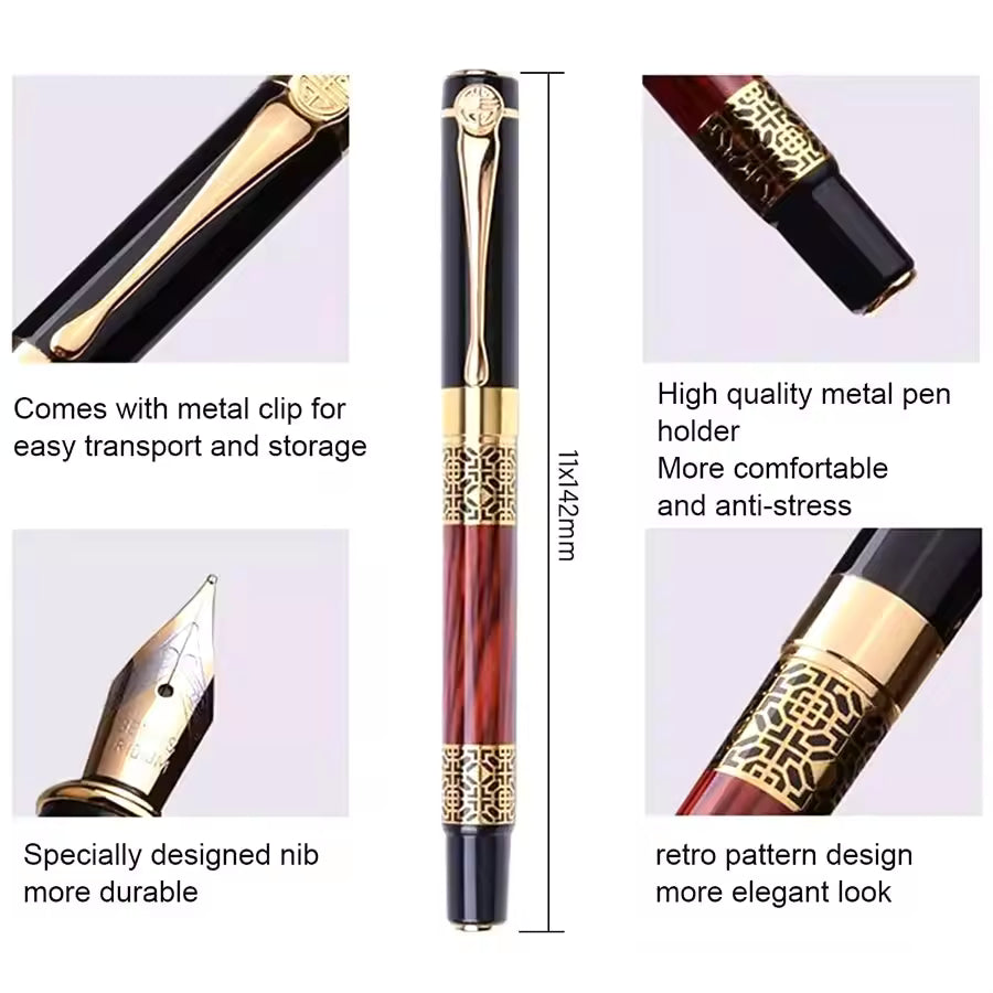 שדרג את חוויית הכתיבה שלך עם העט הנובע האלגנטי והניתן להתאמה אישית. עט זה כולל עיצוב יפהפה בסגנון וינטג' עם פרטים מורכבים וזרימת דיו חלקה ועקבית. גולת הכותרת של פריט זה היא האפשרות לחרוט בלייזר שם על גוף העט, מה שהופך אותו למתנה אישית ונצחית באמת. זוהי המתנה המושלמת לסופרים, אנשי מקצוע, או לכל מי שמעריך את אמנות הכתיבה.