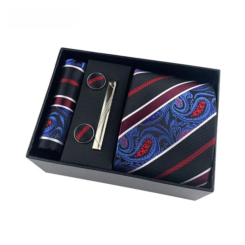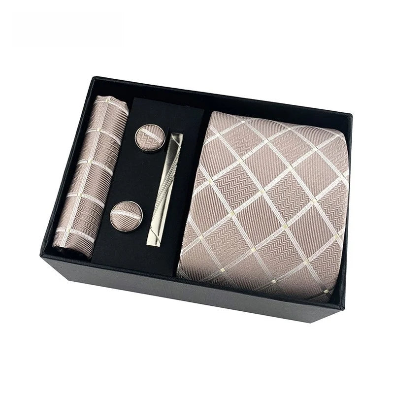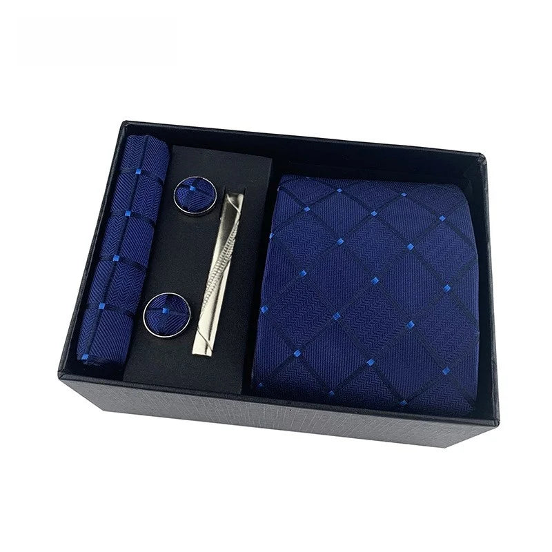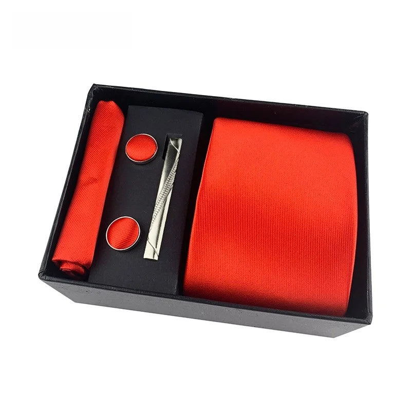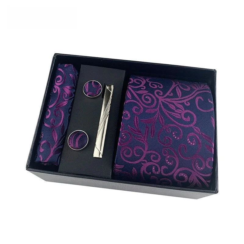 סט מתנה שלם עם עניבה, חפתים וסיכת עניבה
