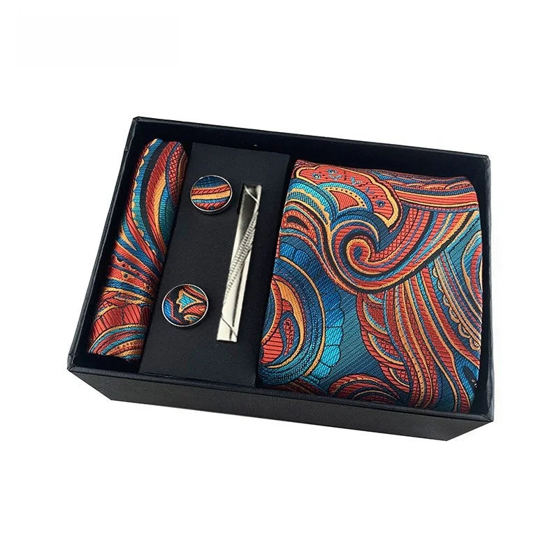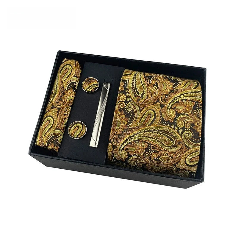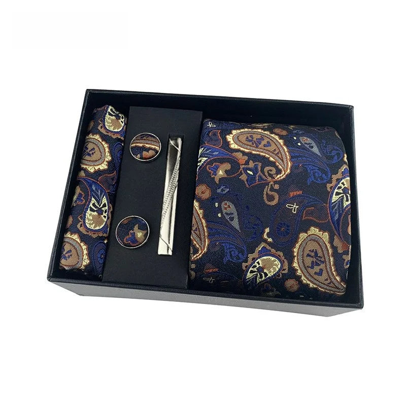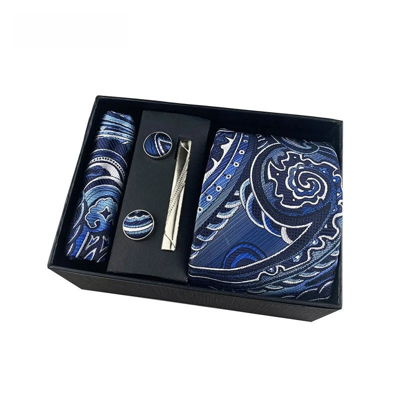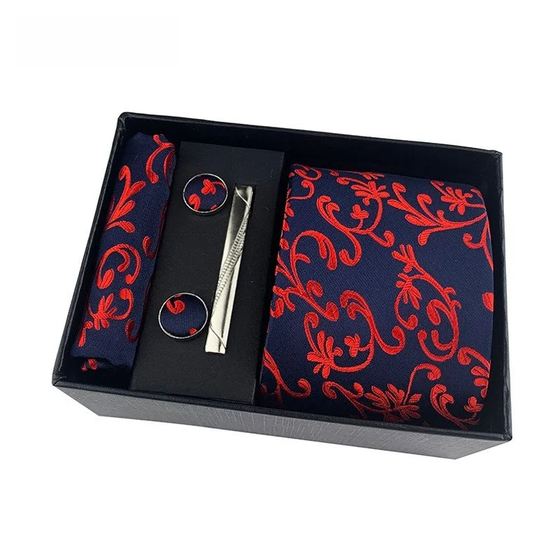 סט מתנה שלם עם עניבה, חפתים וסיכת עניבה