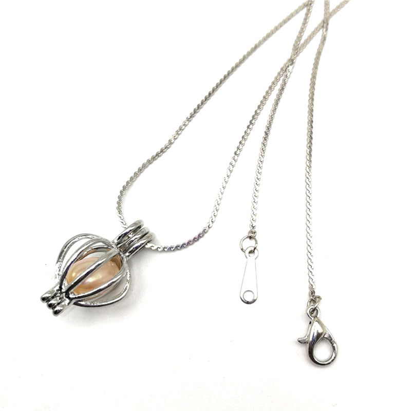 שרשרת כסופה מהממת עם תליון מעוצב בצורת כלוב פתוח, מוכן לאירוח הפנינה שלכם.