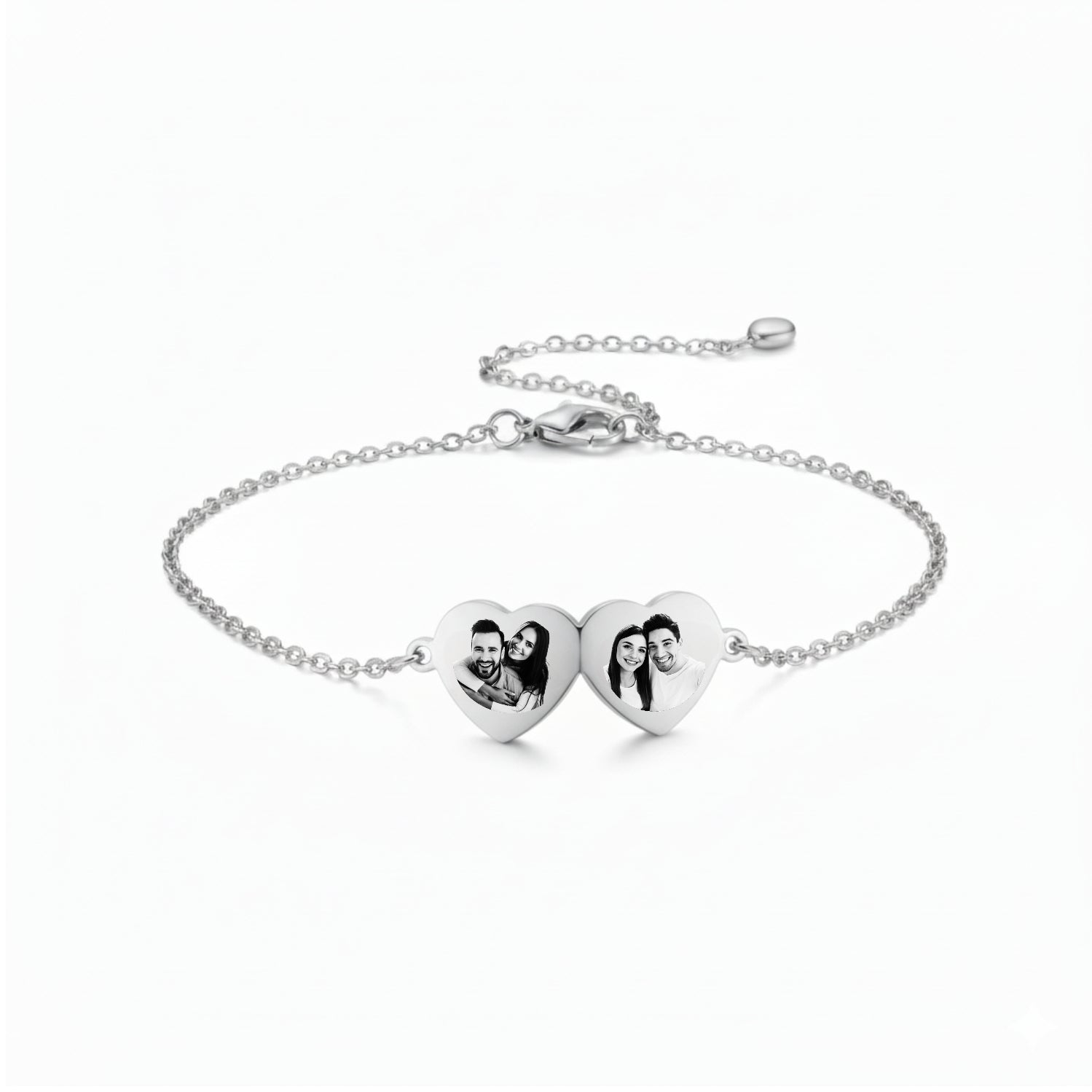 צמד לבבות מחוברים עם חריטה של 2 ,3 או 4 תמונות אישית – מתנה משפחתית מושלמת לאמא ,לאישה עם תמונה שלילדים