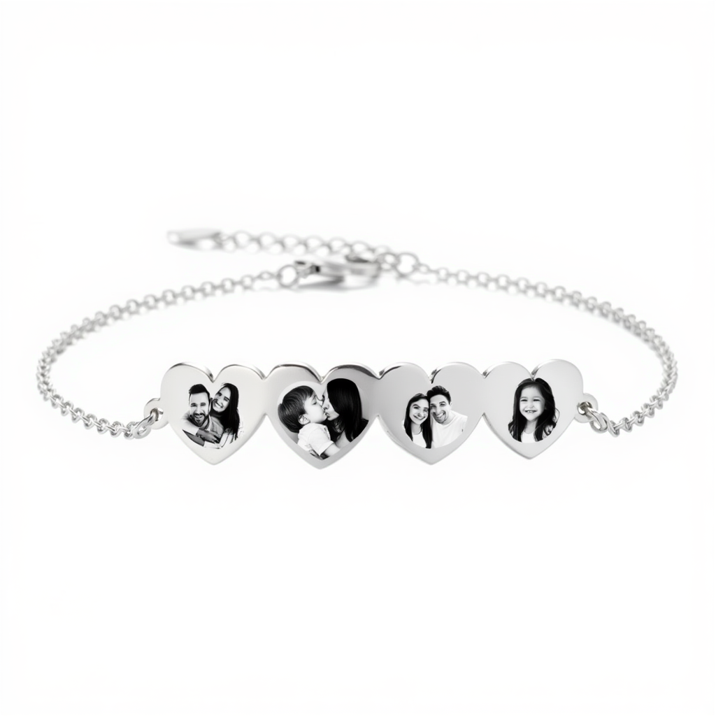 צמד לבבות מחוברים עם חריטה אישית – מתנה משפחתית מושלמת תכשיט עדין ומרגש: 2–4 לבבות קטנים מחוברים זה לזה על שרשרת דקה, כל לב נחרט עם תמונה סמל לאהבה, משפחה וקשר בלתי נשבר – מושלם ליום הולדת, יום נישואין או "סתם כי מגיע".