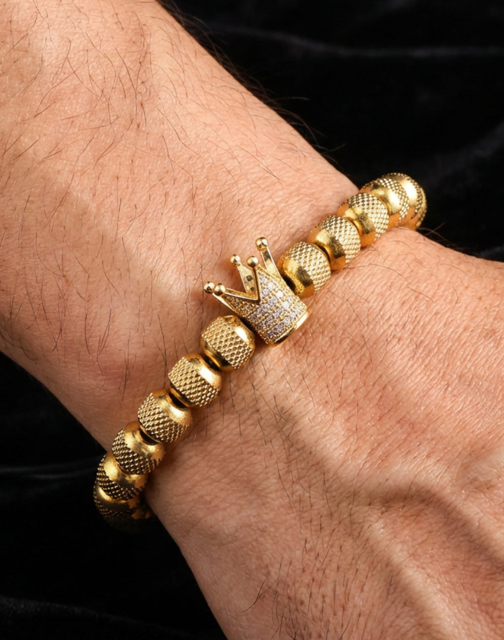 צמיד חרוזים לגבר עם תליון כתר ,מתנה לגבר