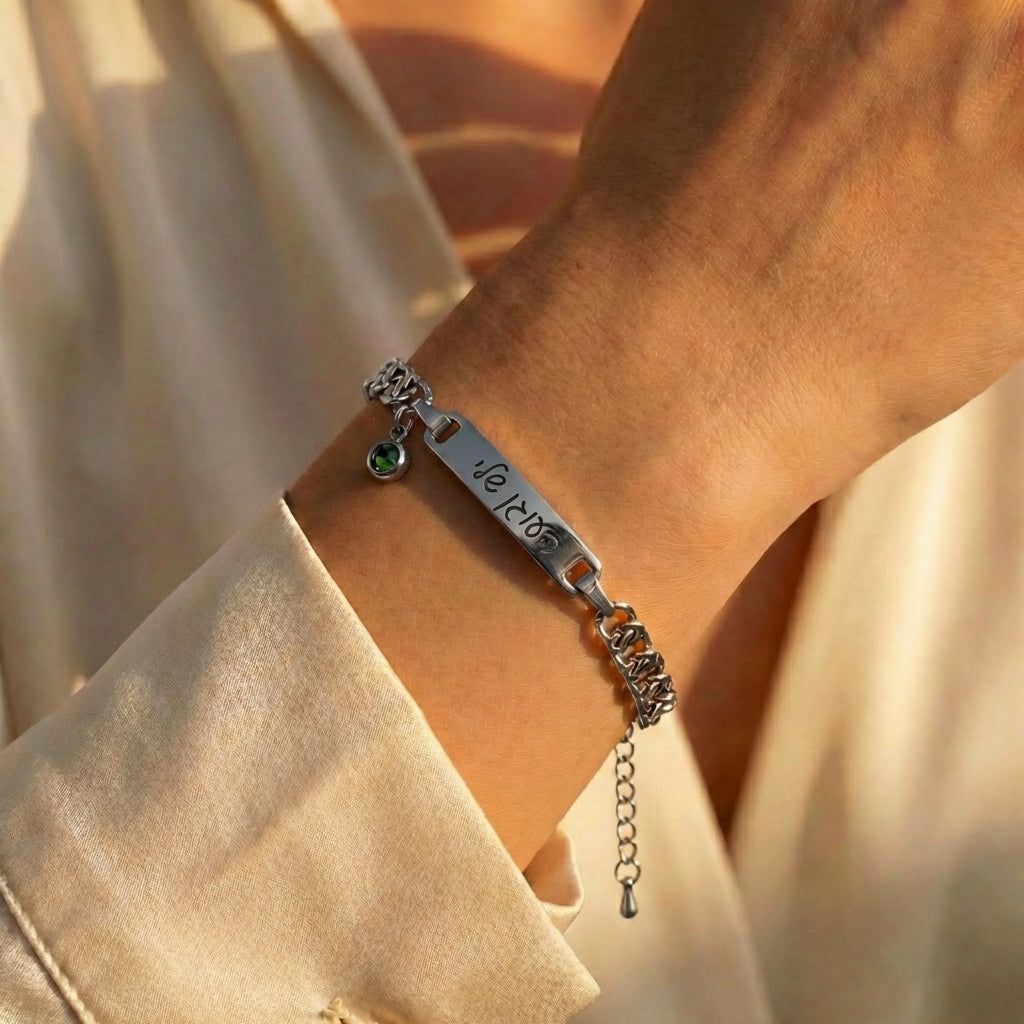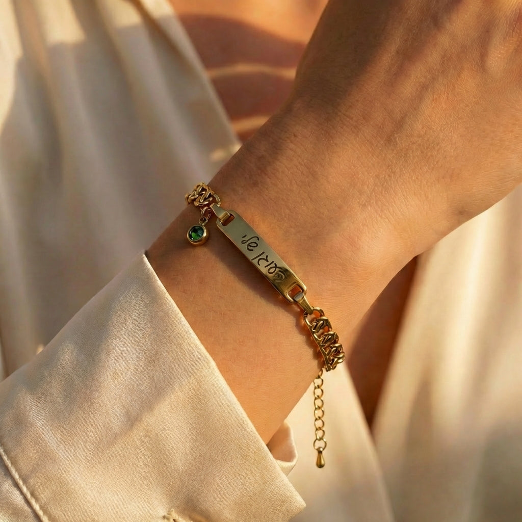 צמיד חרוט לאישה- תכשיטים עם חריטה אישית של משפט, שם ,תארך