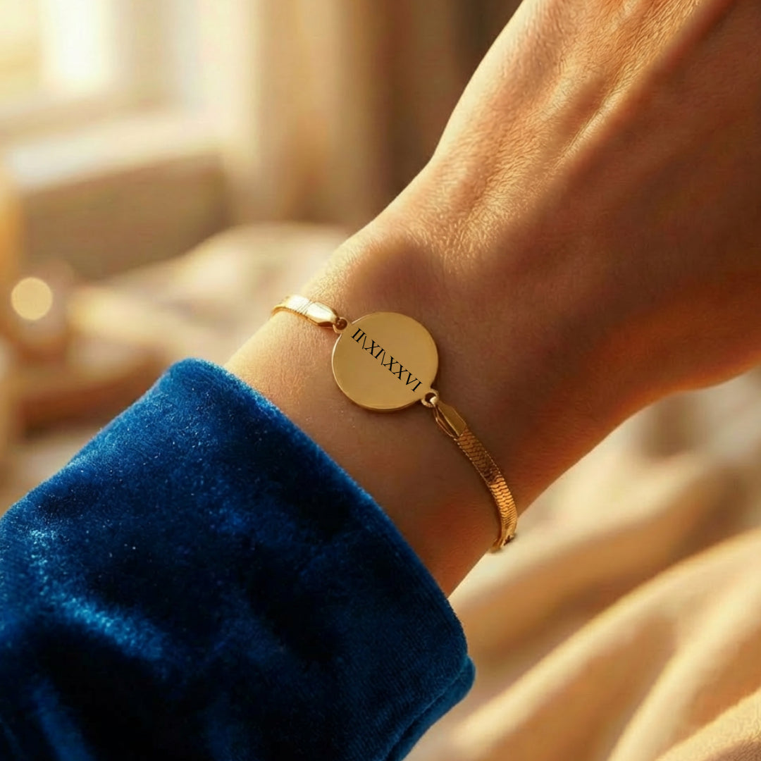 צמיד לאישה מלוטש אלגנטי עם תליון חריטה של תמונה ,משפט,אות,תאריך אישית