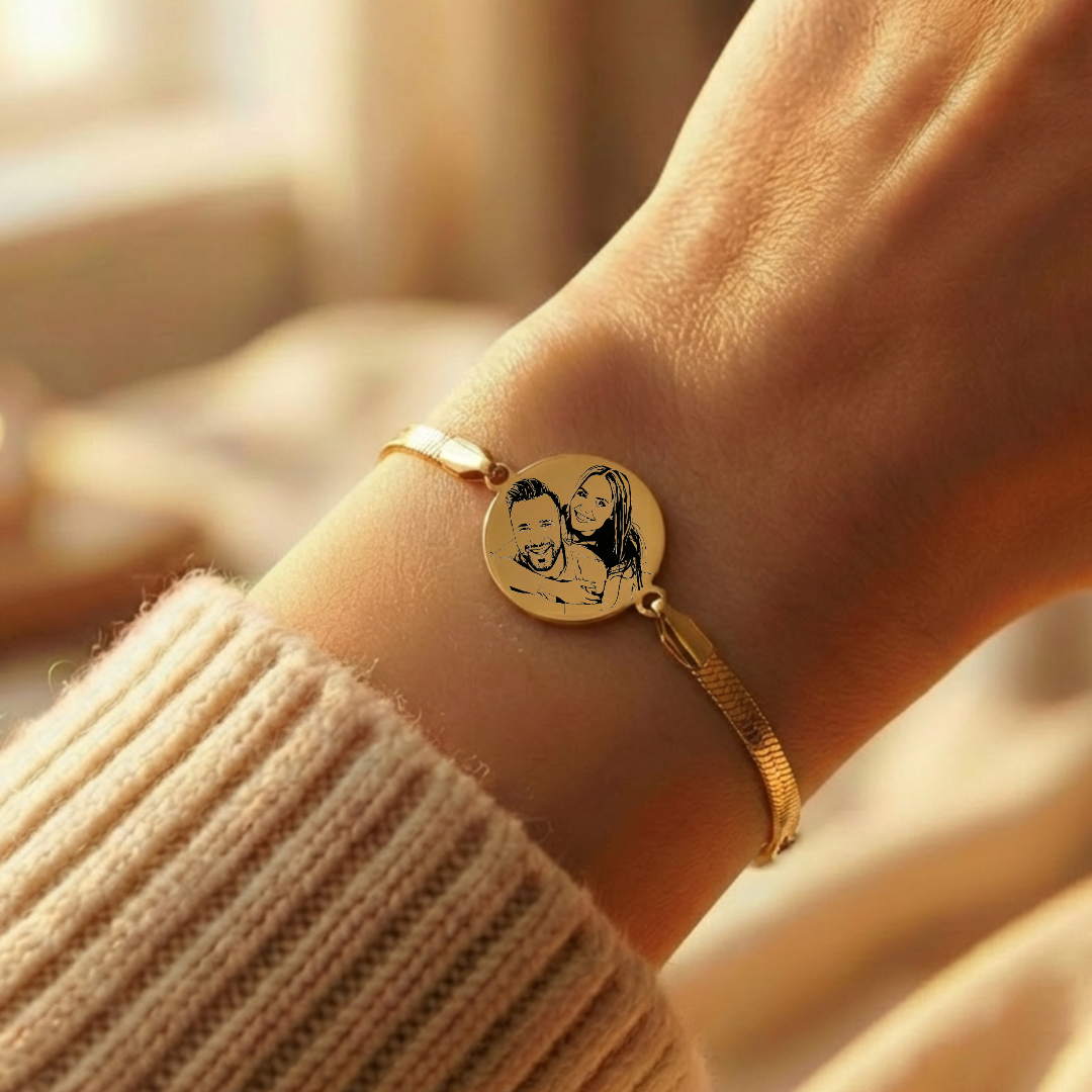 צמיד לאישה מלוטש אלגנטי עם תליון חריטה של תמונה ,משפט,אות,תאריך אישית