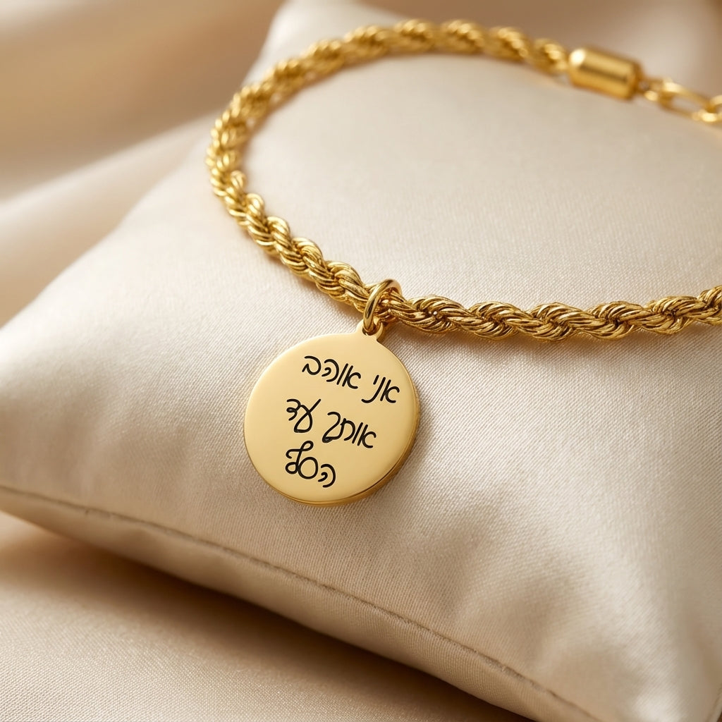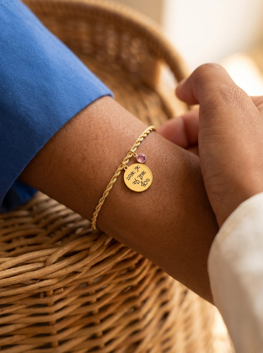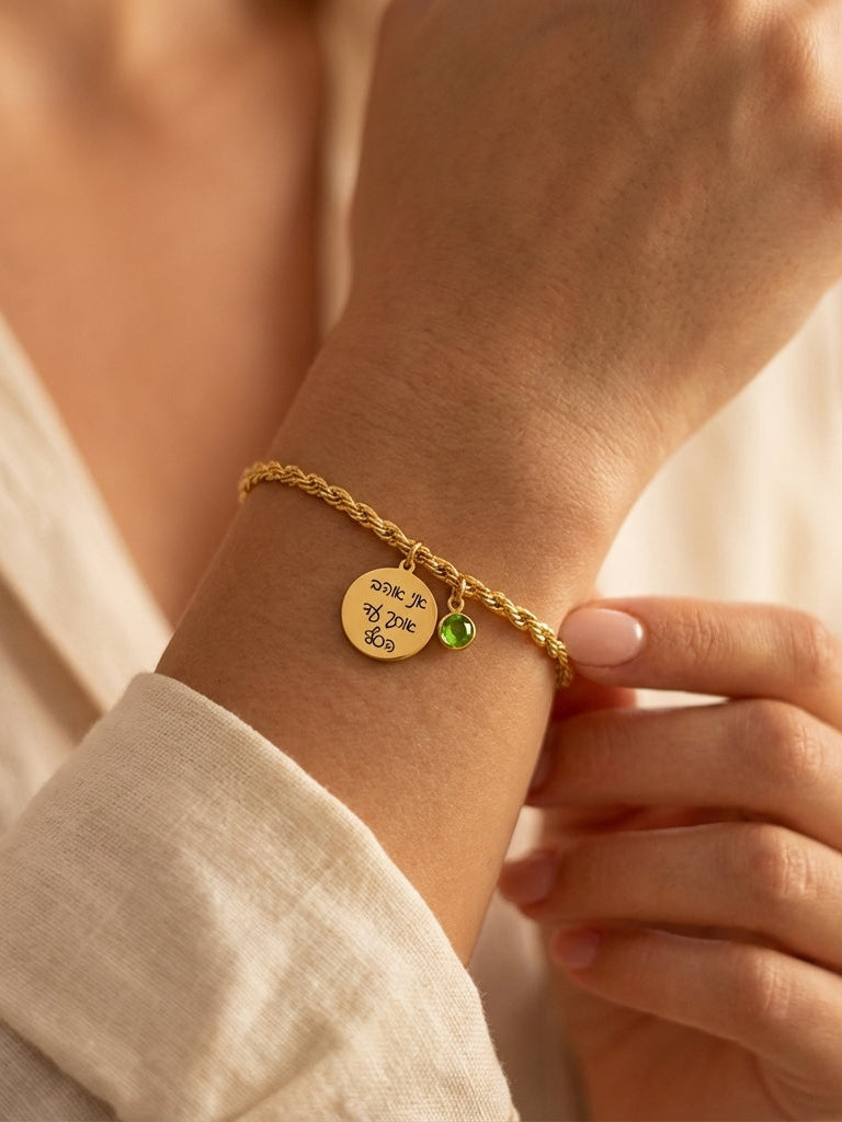 צמיד לאישה עם חריטה אישית ואבן לידה – שרשרת חבל