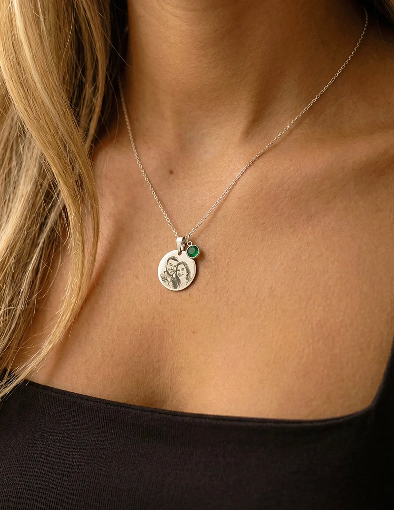 שרשרת כסף חרוטה עיגולה עם תמונה אישית