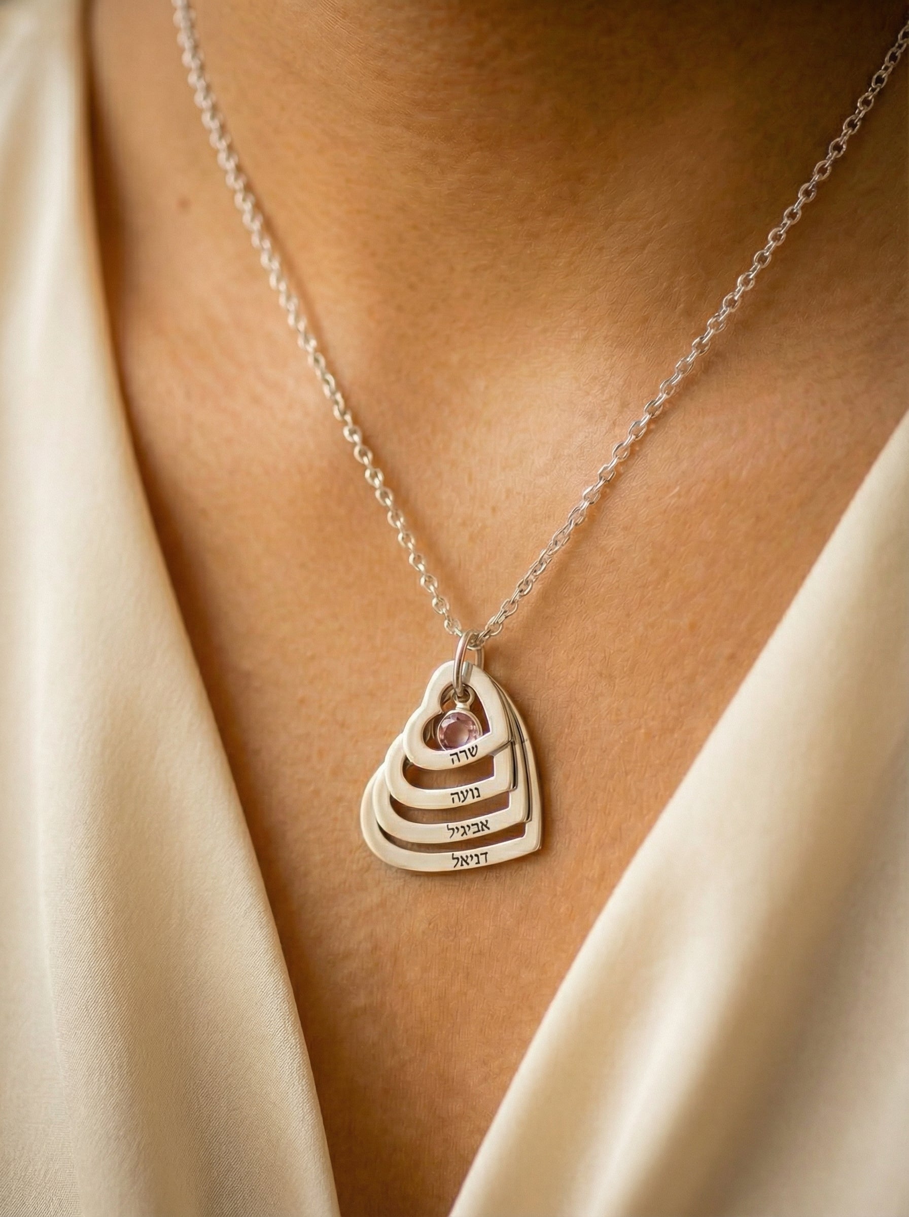שרשרת לבבות מחוברים עם חריטה אישית – מתנה משפחתית מושלמת תכשיט עדין ומרגש: 2–4 לבבות קטנים מחוברים זה לזה על שרשרת דקה, כל לב נחרט עם שם, תאריך או מילה אהובה. סמל לאהבה, משפחה וקשר בלתי נשבר – מושלם ליום הולדת, יום נישואין או "סתם כי מגיע".