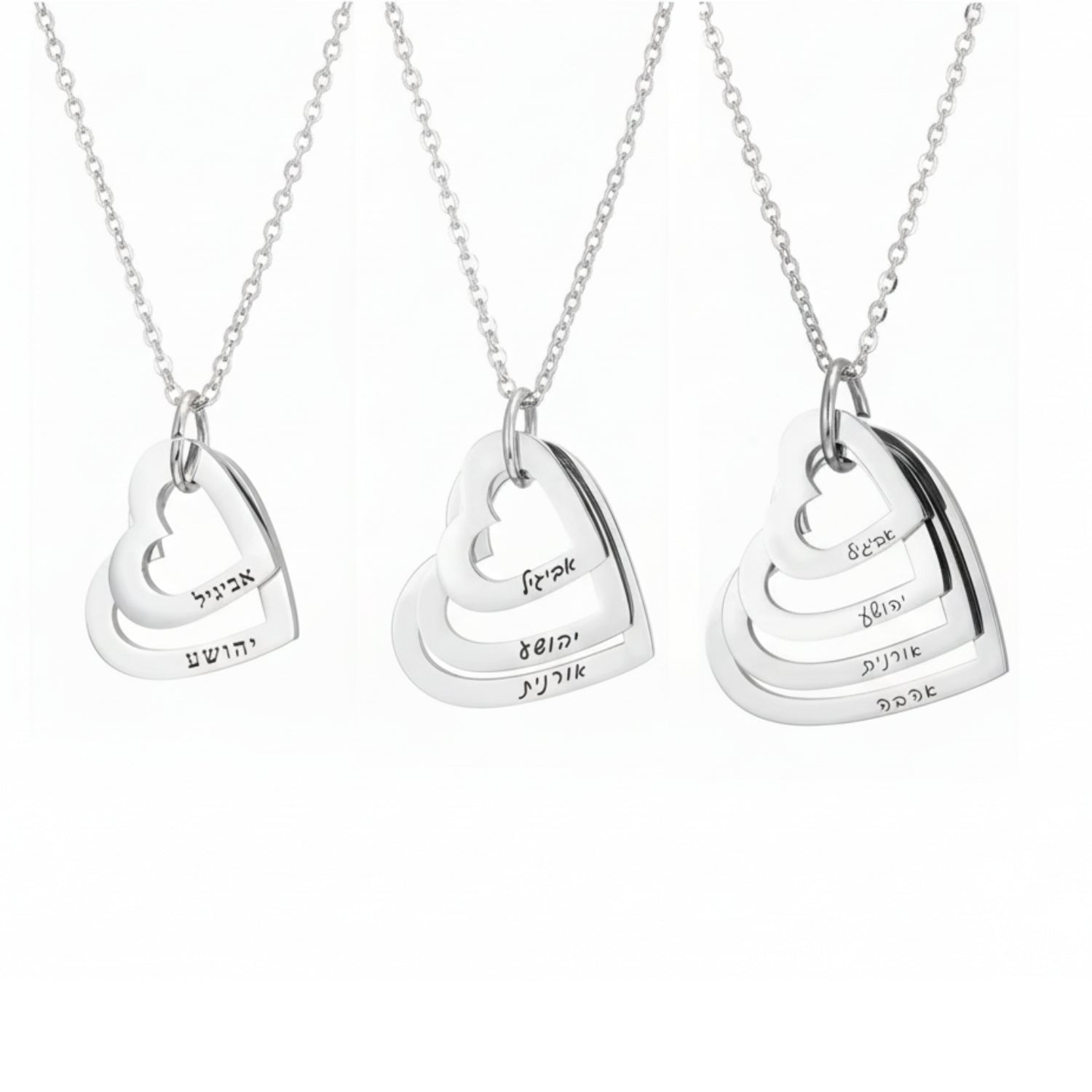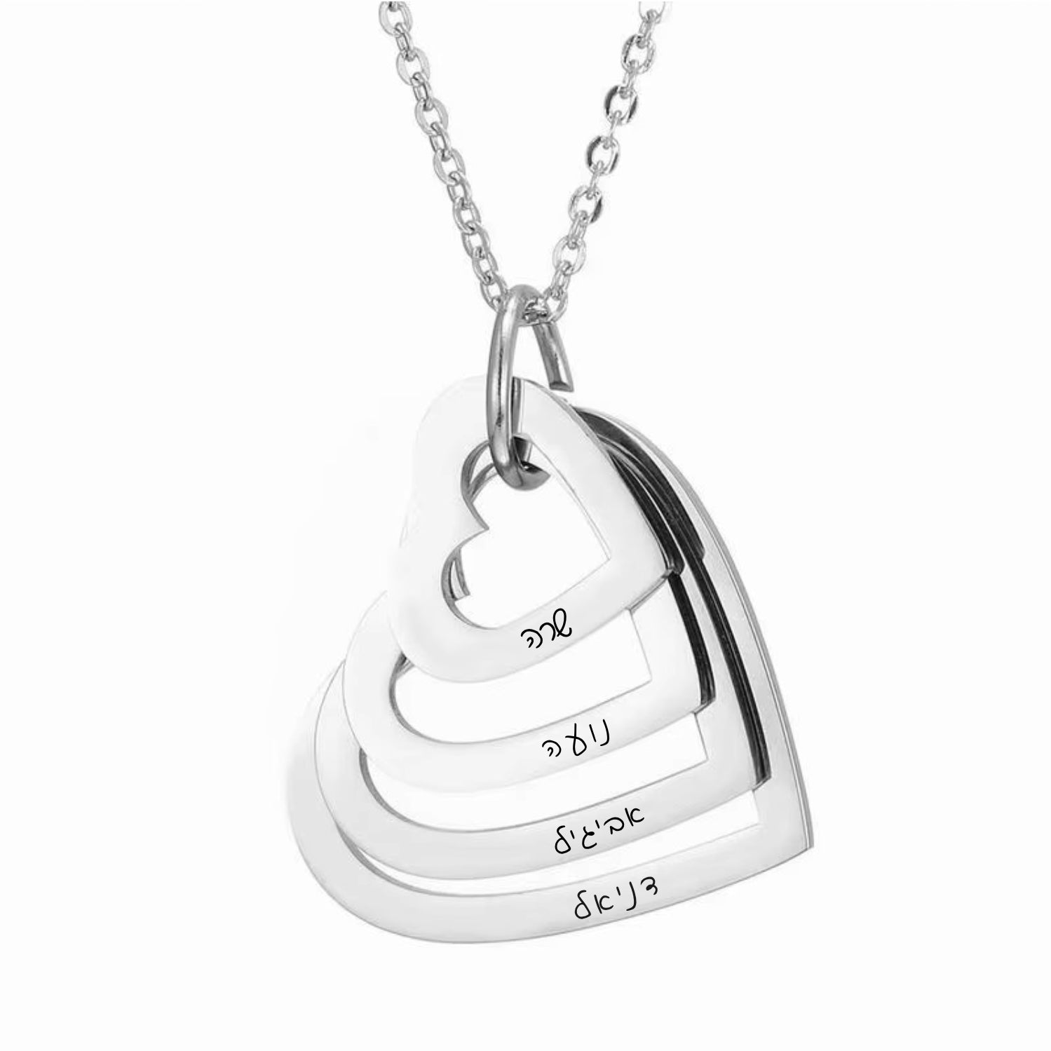 שרשרת לבבות בהתאמה אישית עם עד 4 חריטות שמות