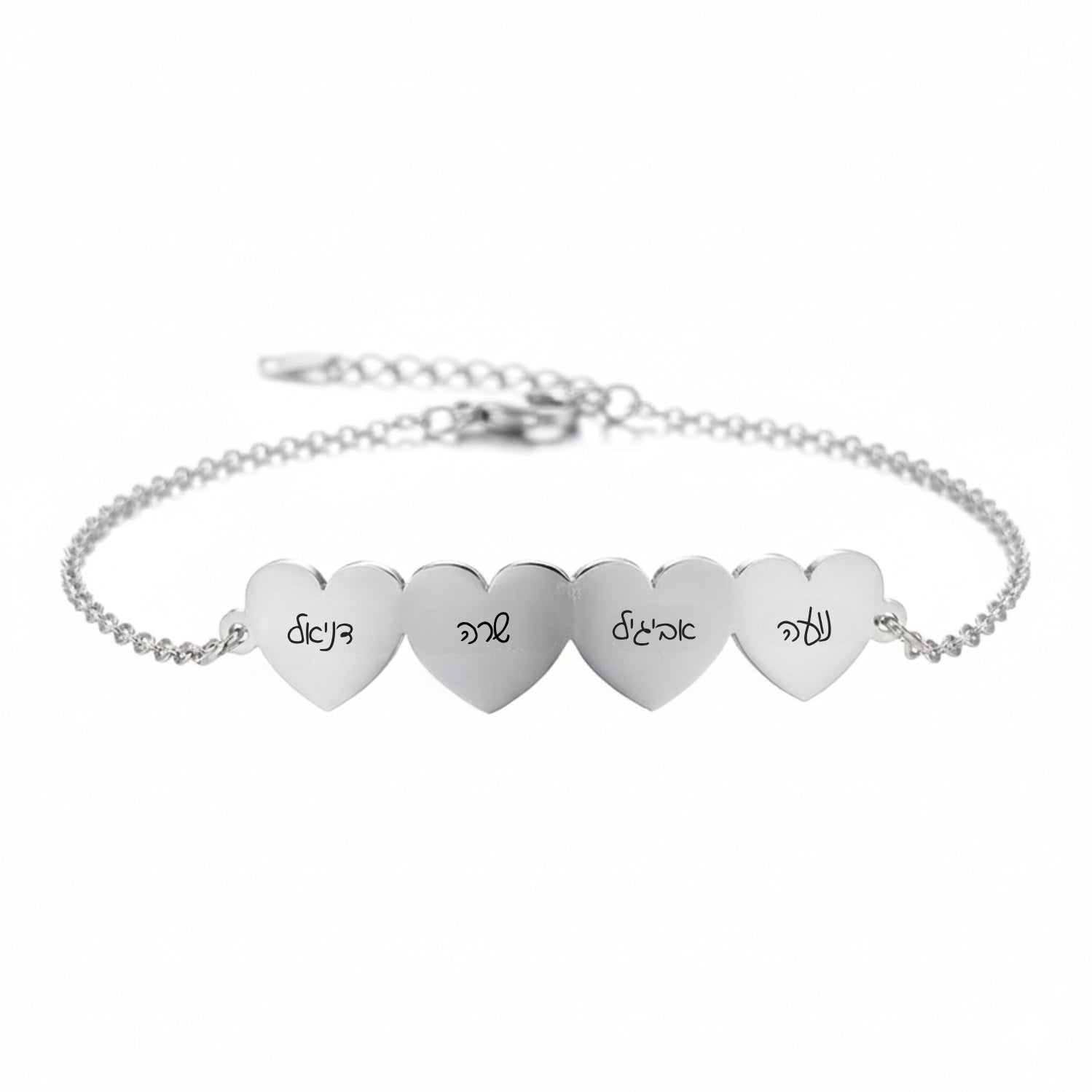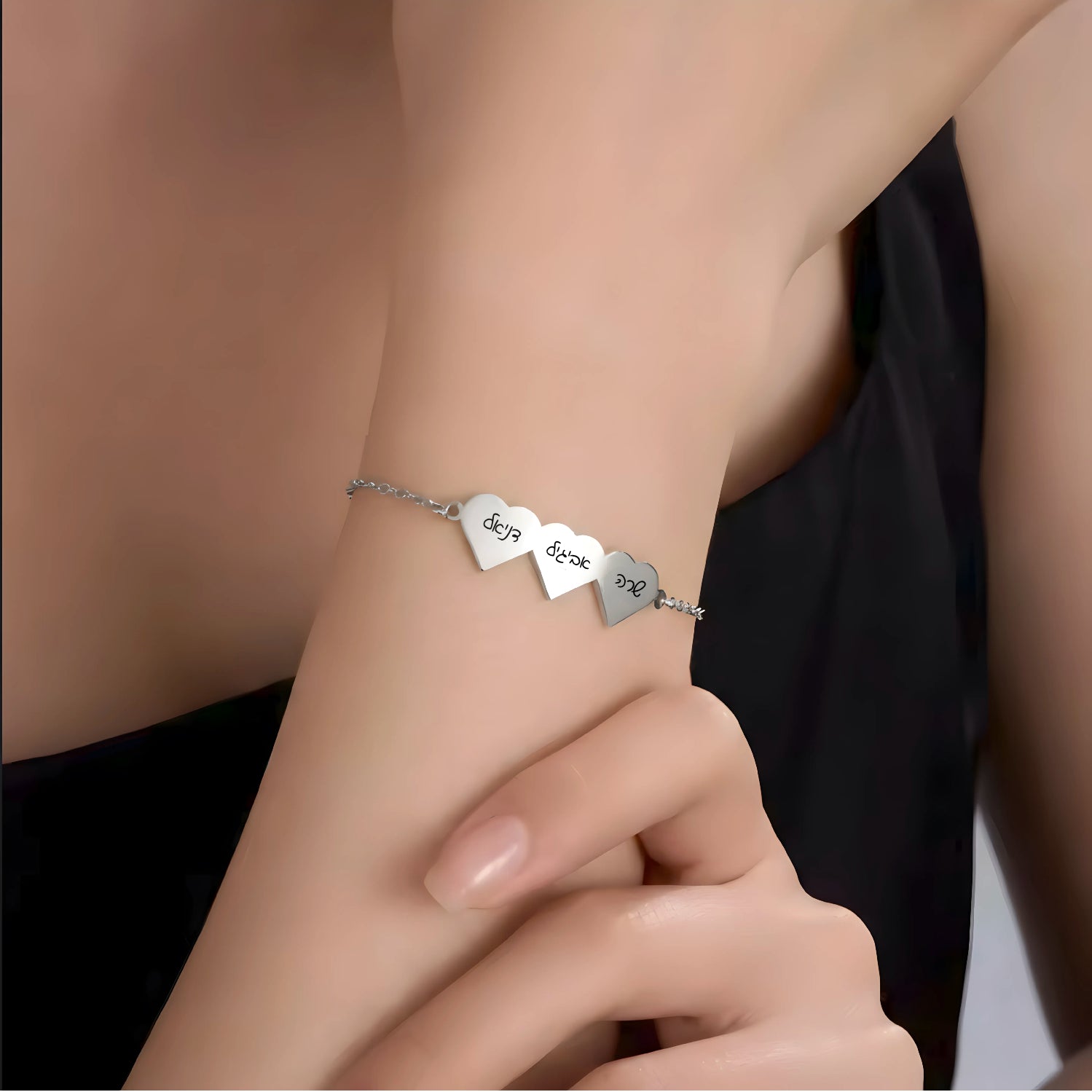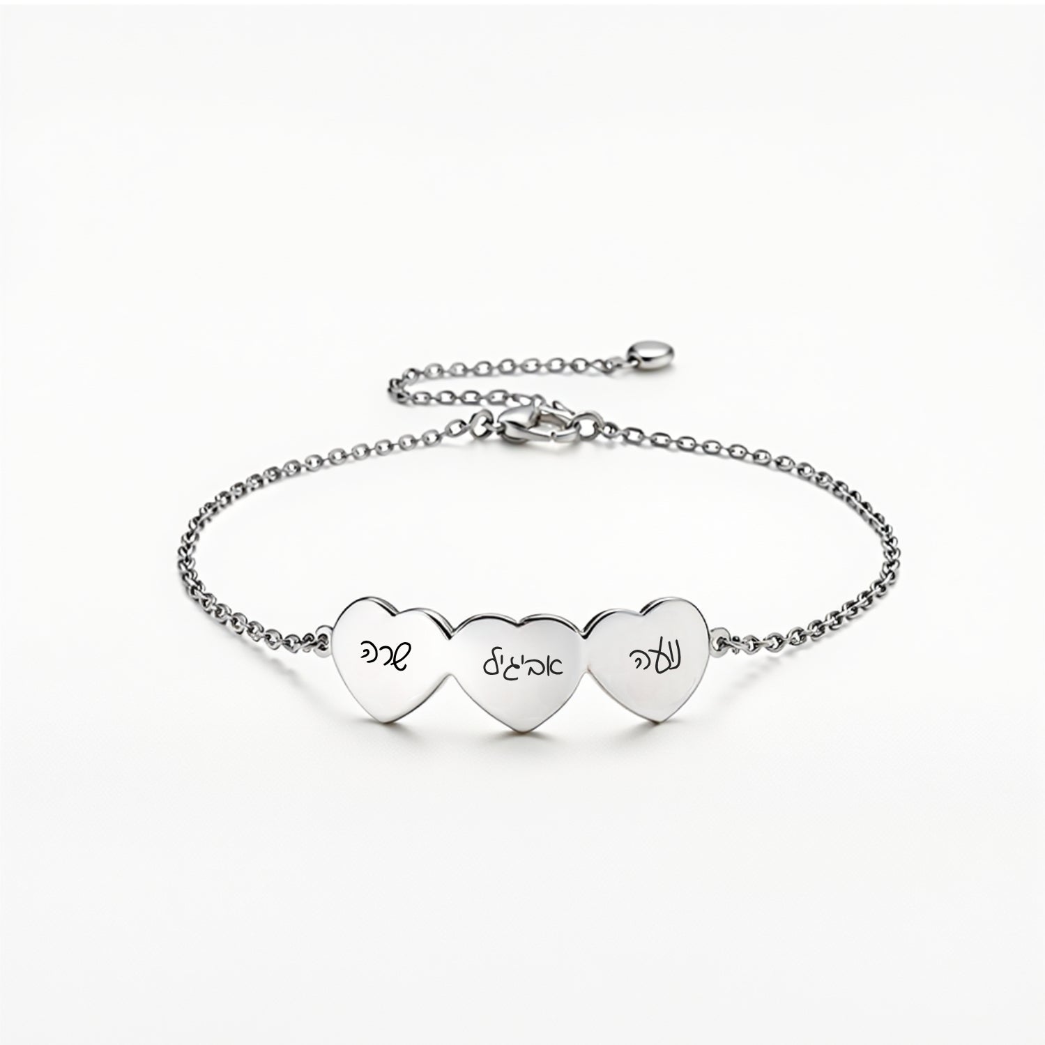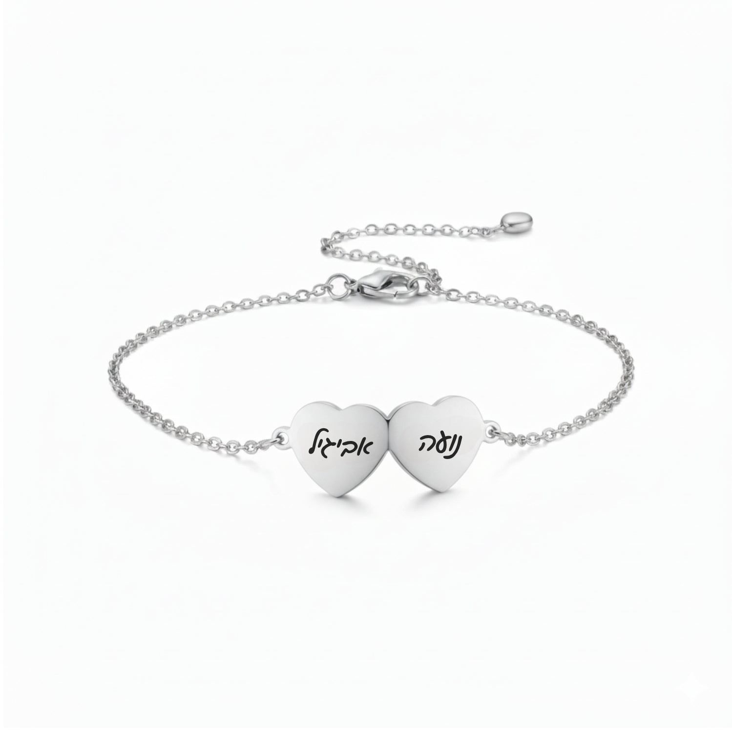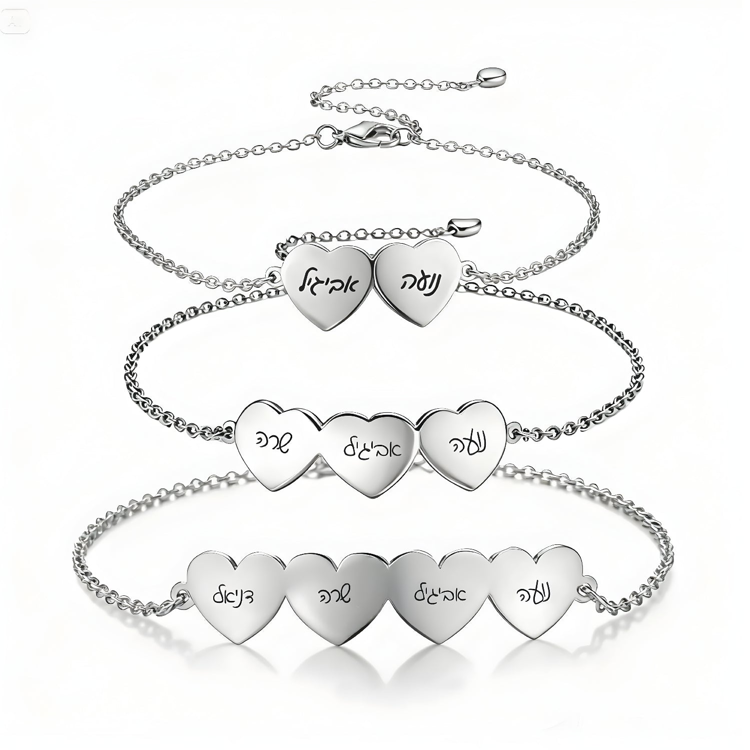 צמד לבבות מחוברים עם חריטה אישית – מתנה משפחתית מושלמת תכשיט עדין ומרגש: 2–4 לבבות קטנים מחוברים זה לזה על שרשרת דקה, כל לב נחרט עם שם, תאריך או מילה אהובה. סמל לאהבה, משפחה וקשר בלתי נשבר – מושלם ליום הולדת, יום נישואין או "סתם כי מגיע".