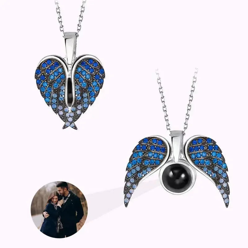 שמרו תמונה של אהובכם קרוב ללבכם עם שרשרת לבבות מעודנת עם כנפיים. תליון כסף מדהים זה כולל עיצוב בצורת לב עם כנפיים המעוטרות בגבישים כחולים נוצצים. הלב נפתח כדי לחשוף פיסת תמונה סודית ומותאמת אישית שבה תוכלו למקם תמונה אישית, מה שהופך אותה לסמל עוצמתי ואלגנטי של אהבה והגנה.