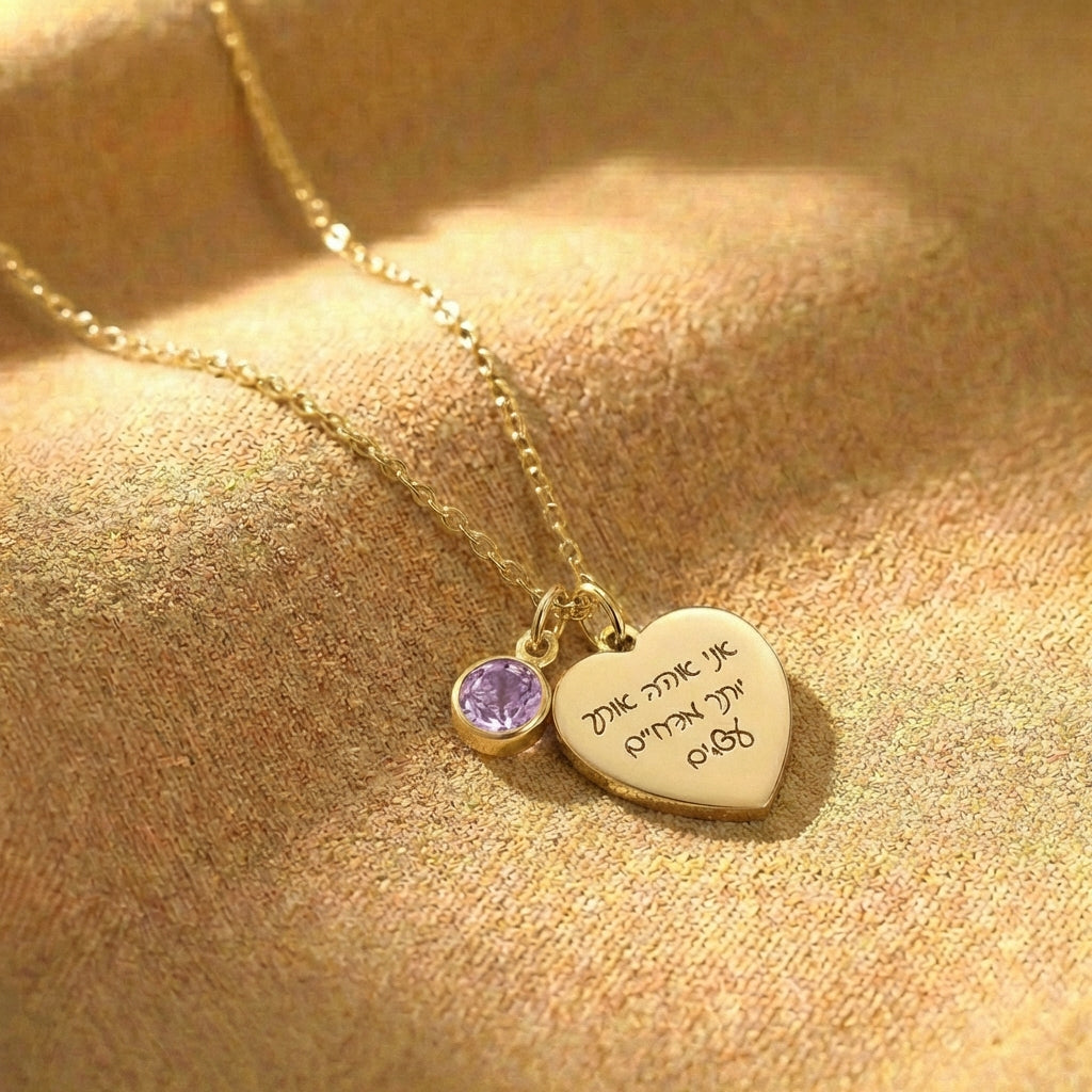 שרשרת לב עם חריטה של משפט