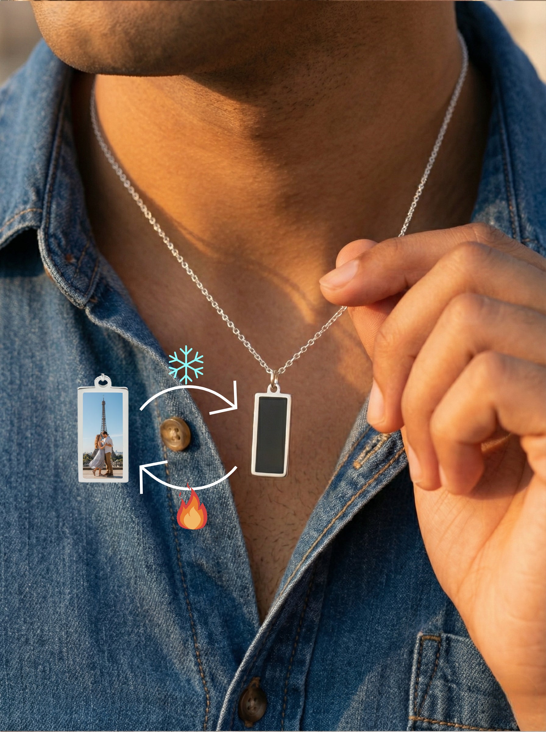 שמור את הזיכרונות היקרים לך ביותר קרוב ללבך עם שרשרת מרהיבה זו, הניתנת להתאמה אישית. זמינה בצורות שונות, שרשרת אלגנטית זו מכילה סוד מיוחד: תמונה אישית שנחשפת כאשר התליון מופעל על ידי חום הגוף. זוהי דרך יפהפייה ואינטימית לשאת עמך זיכרון של אדם אהוב או רגע מיוחד, מה שהופך אותה למתנה המושלמת לימי נישואין, ימי הולדת או לכל אירוע מיוחד.