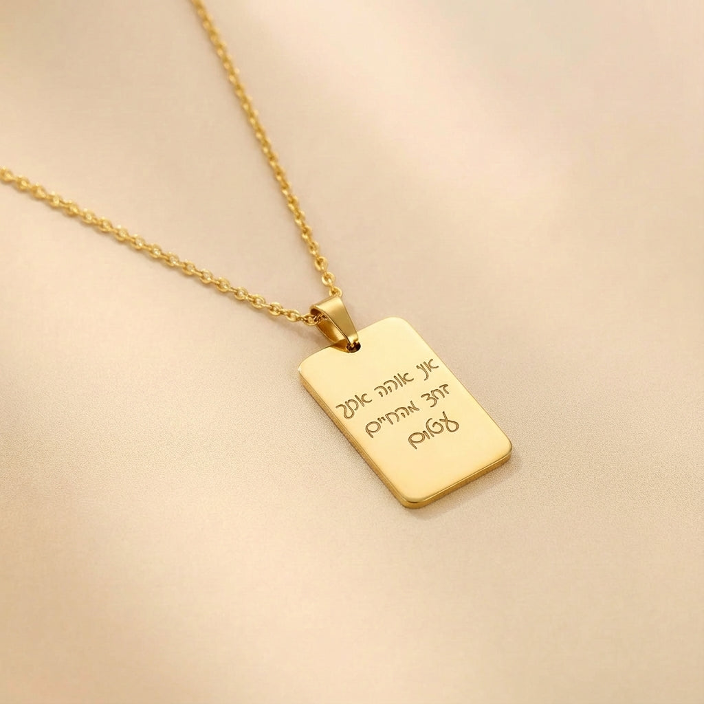 שרשרת מלבנית עם חריטה של משפט