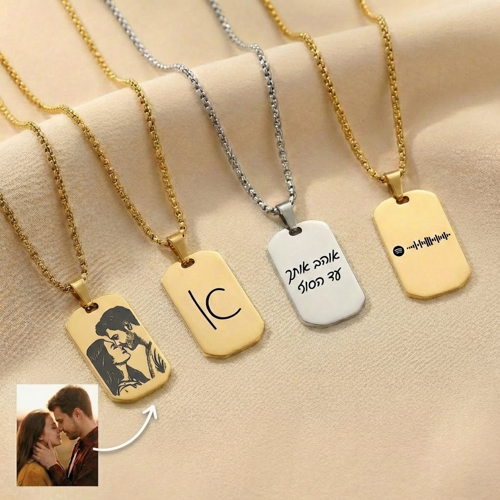 שרשרת תגית מלבנית עם חריטה – , אות אישי