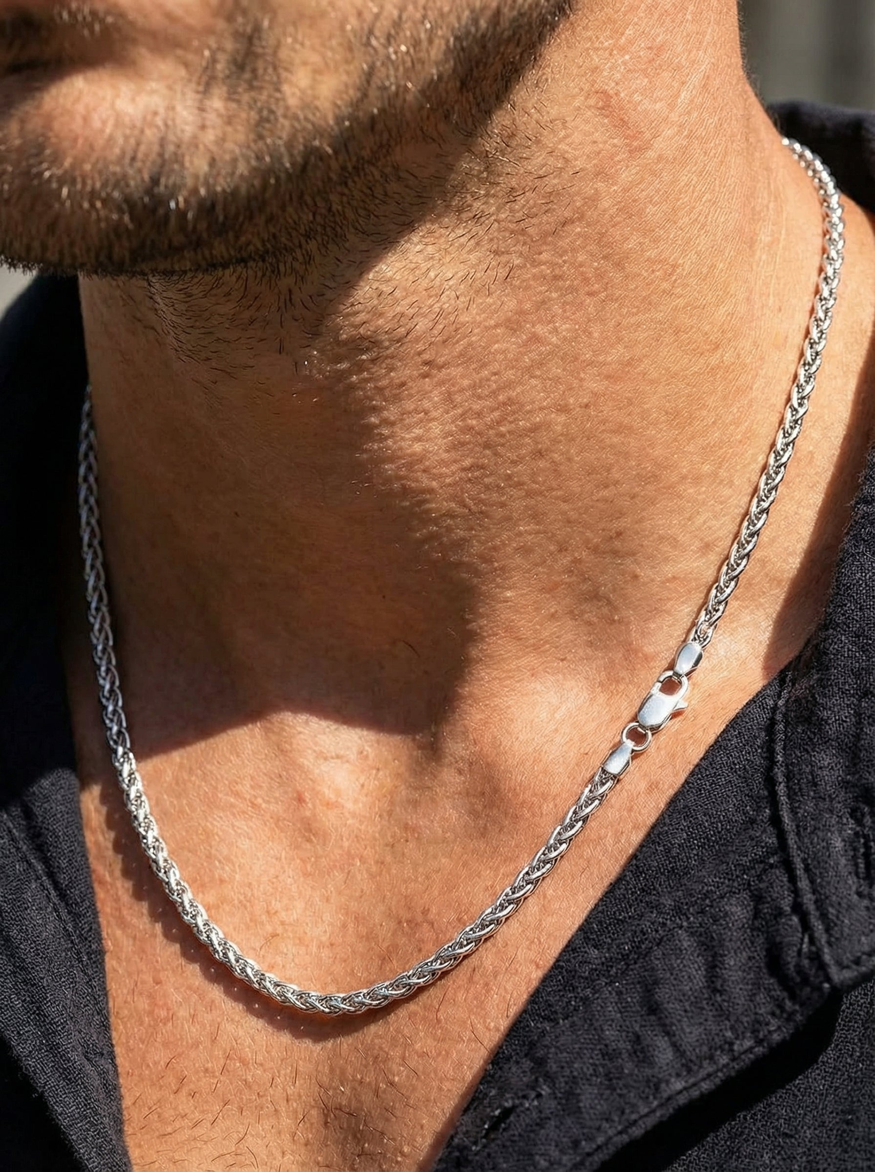שרשרת חיטה (ספיגה) לגבר – שרשרת חוליות קלועה ומעוצבת | תכשיט גברי יוקרתי מפלדת