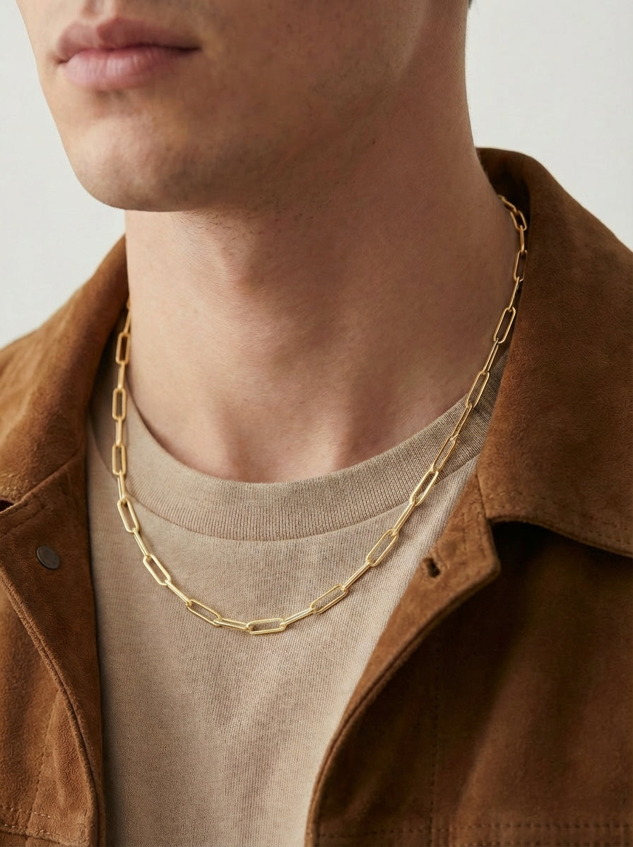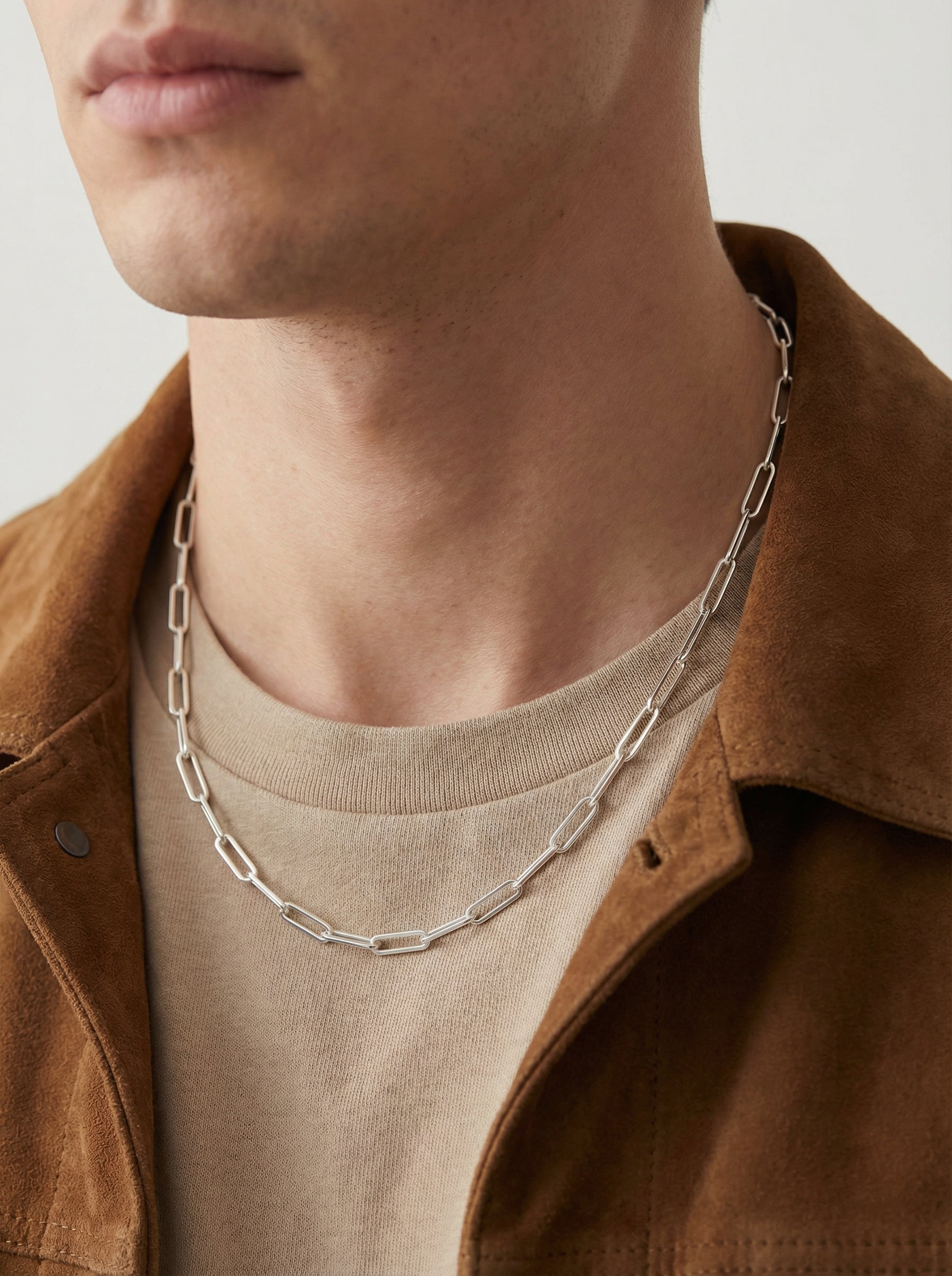 שרשרת מלבניות פייפר קליפ חוליות בעיצוב אלגנטי – שרשרת לולאות אובליות לגבר