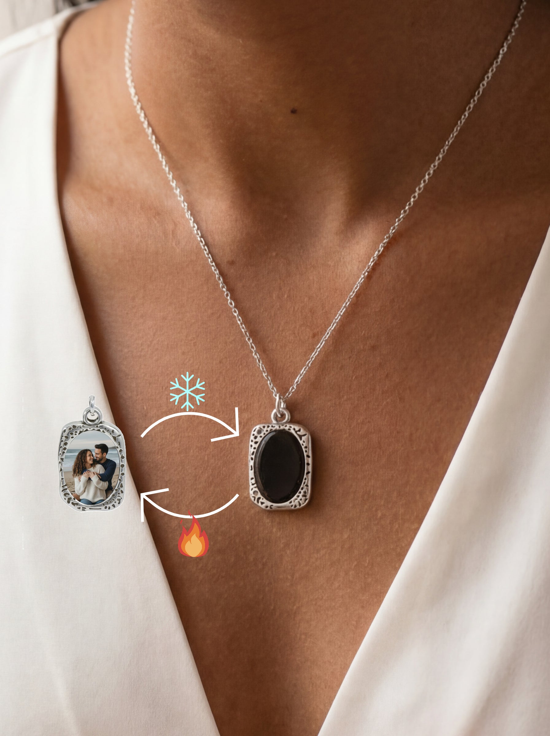 שמור את הזיכרונות היקרים לך ביותר קרוב ללבך עם שרשרת מרהיבה זו, הניתנת להתאמה אישית. זמינה בצורות שונות, שרשרת אלגנטית זו מכילה סוד מיוחד: תמונה אישית שנחשפת כאשר התליון מופעל על ידי חום הגוף. זוהי דרך יפהפייה ואינטימית לשאת עמך זיכרון של אדם אהוב או רגע מיוחד, מה שהופך אותה למתנה המושלמת לימי נישואין, ימי הולדת או לכל אירוע מיוחד.