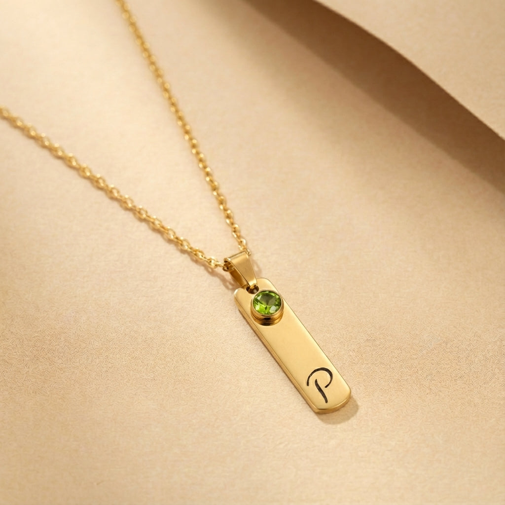 שרשרת תליון מלבנית עם חריטה אישית של אות השם