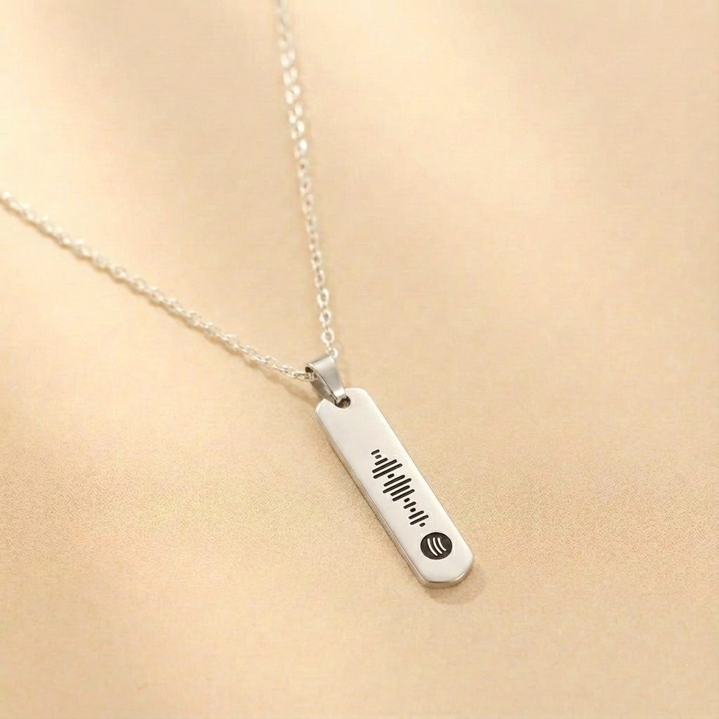 שרשרת תליון מלבנית עם חריטה אישית של קוד מוזיקה לספוטיפיי
