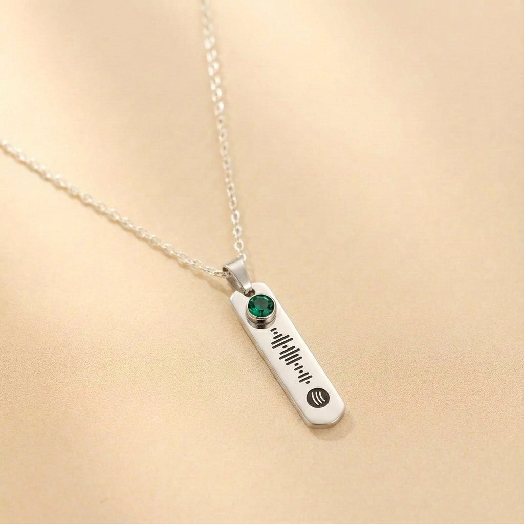 שרשרת תליון מלבנית עם חריטה אישית של קוד מוזיקה לספוטיפיי