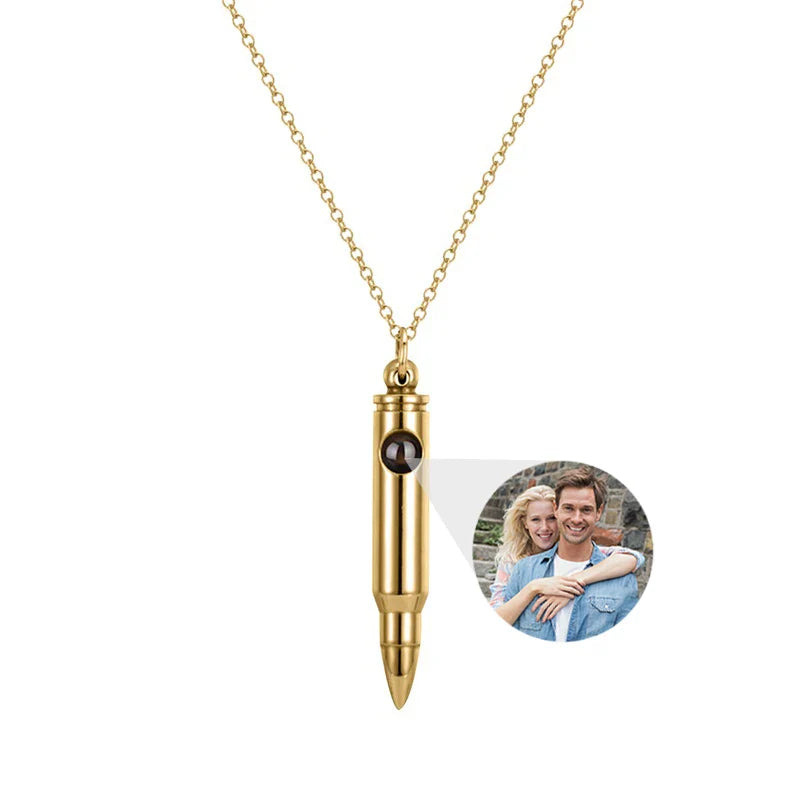שמרו על סמל עוצמתי של זיכרונות יקרים עם תליון הקליע המותאם אישית שלנו. תליון מדהים זה בצבע זהב כולל עיצוב מבריק בצורת קליע שמסתיר בתוכו אוצר: תא סודי להצגת התמונה היקרה לכם ביותר. העיצוב הייחודי הוא דרך נועזת ומסוגננת לשמור על אהוב קרוב ללבכם. השרשרת זמינה בזהב, כסף או זהב אדום, ומושלמת לכל מי שמחפש לעשות הצהרה אישית ובלתי נשכחת.