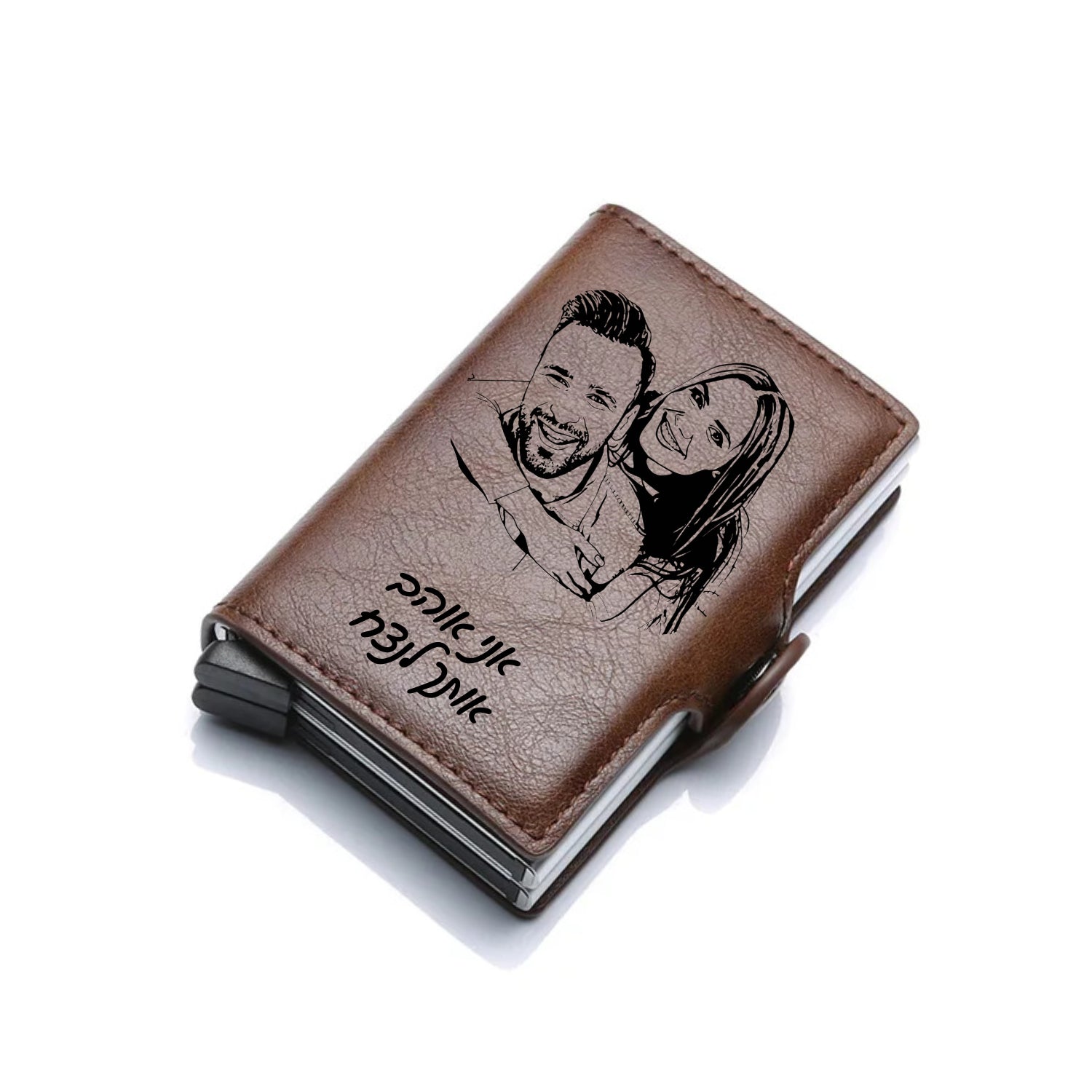 ארנק כרטיסים אלגנטי וייחודי זה הוא השילוב המושלם בין פונקציונליות מודרנית ורגש אישי. הוא עשוי מעור איכותי וכולל מנגנון קופץ חדשני שמעניק גישה מהירה לכרטיסים. ניתן לחרוט על הארנק בלייזר תמונה אישית של זוג ושמות, מה שהופך אותו למזכרת יחידה במינה. זהו מתנה בטוחה, קומפקטית ואישית במיוחד עבור אהוביכם.